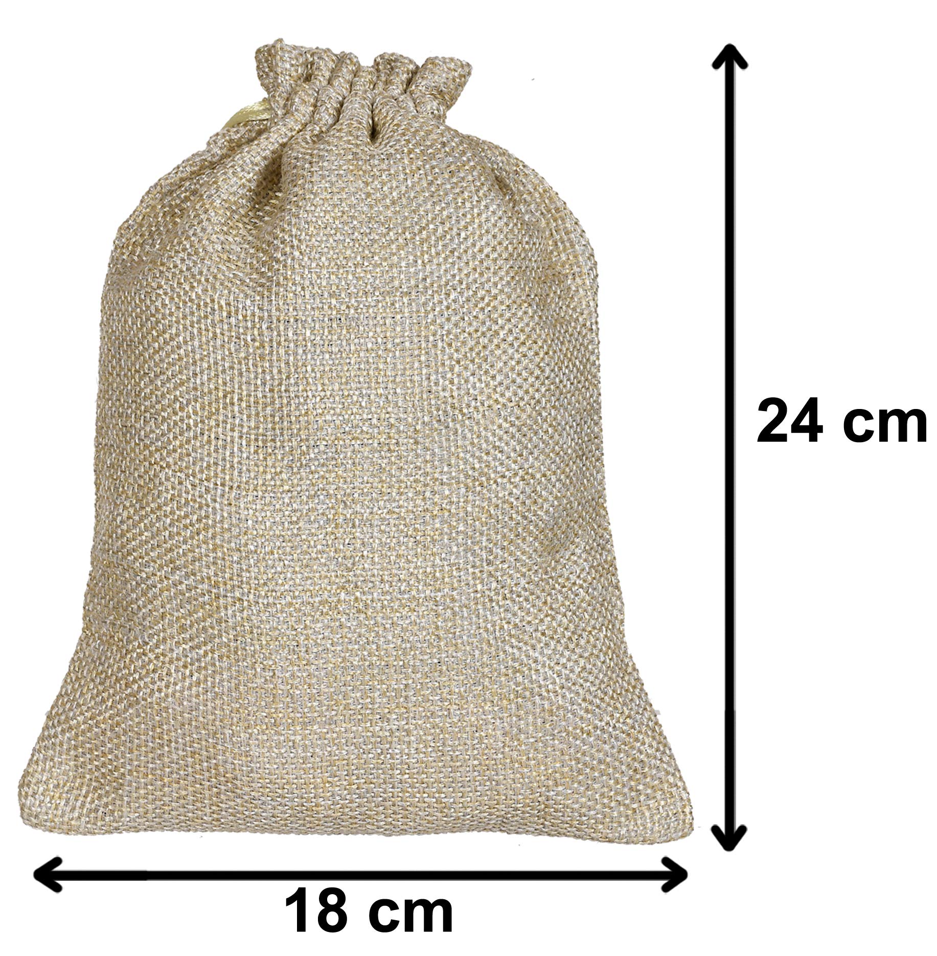 Eco-friendly potli material, Medium vintage jute gift bags with original and earthy look, comes with unique double drawstring. Multi-Function for storing Medium object items such as Medium gifts, coins, jewelry, snacks, candy, wedding favors, makeup bottle cream jar and any other of your Medium daily items to keep all of them in a bag clean and organized. Wide use application for wedding favor gift, crafting DIY projects, home use, travelling, birthday, party, bridal shower, and any other occasions. Inner is made of soft material which prevent scratching or keeping items clean when storing. Super quality and competitive price.Detailed Specifications: