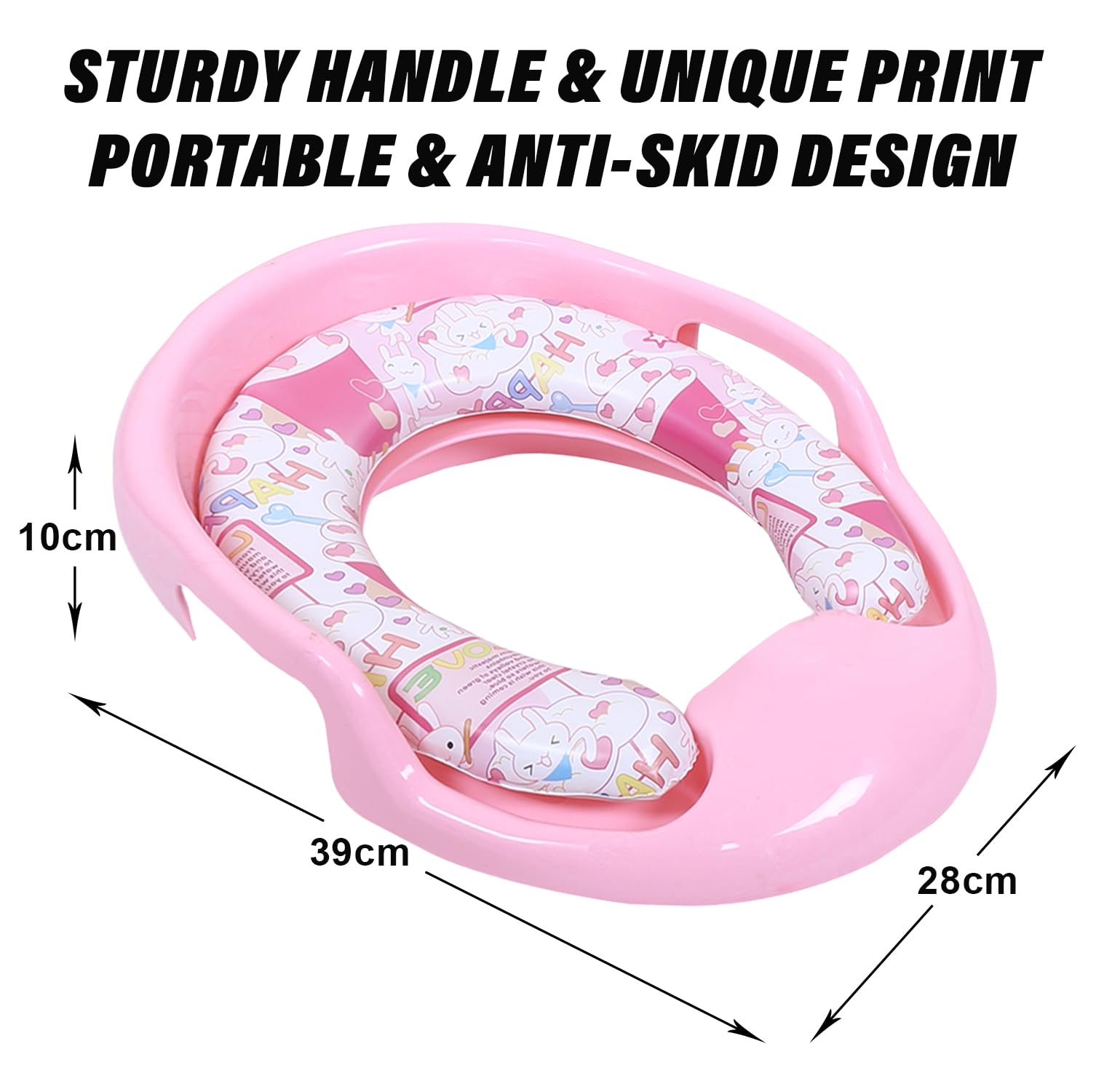Kuber Industries Cushioned Plastic Kids Potty Seat is a product designed for children who are transitioning from using diapers to using the toilet. It is a comfortable and safe option for kids who are learning to use the bathroom on their own.The potty seat is made of quality plastic and has a cushioned seat to ensure maximum comfort for your child. The seat is easy to install and fits most standard toilet seats.This is a practical and convenient product for parents who are potty training their children.Detailed Specifications: