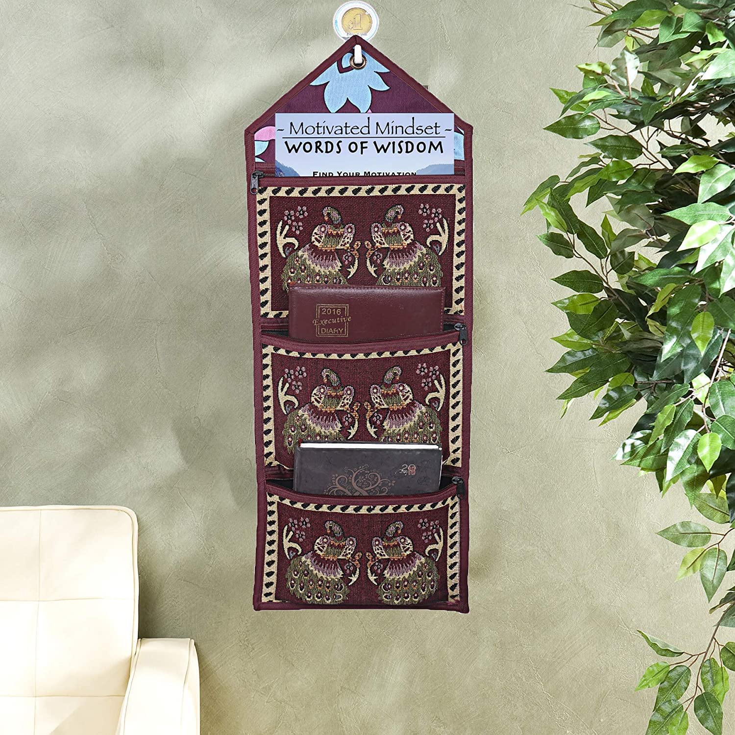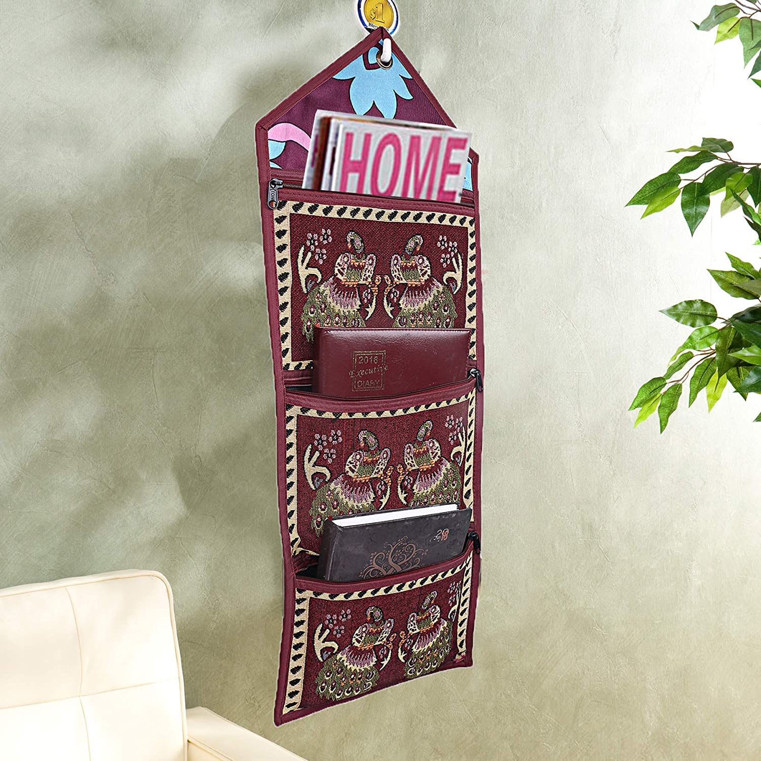 Kuber Industries wall hanging magazine letter holder is made of quality cotton material so this is very durable. This has three utility pockets which look beautiful on the wall. This is perfect for storing magazines, letters, bills, notes, remotes, diaries, pens, keys, envelops, cosmetics or any other essentials. As the name suggests, you can hang it on the door, kitchen, bathroom, living room and anywhere. This magazine holder has good print design which makes it very beautiful.Detailed Specifications: