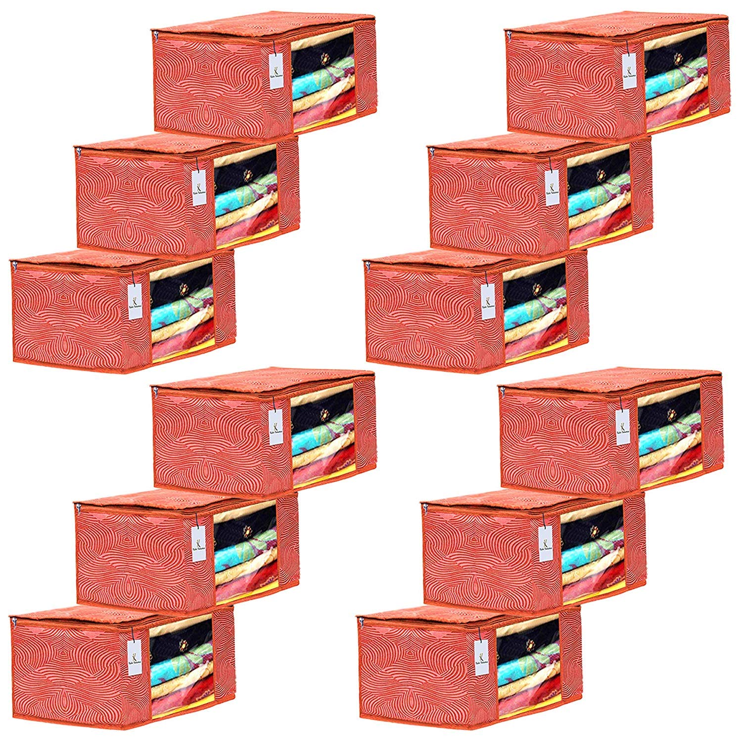 Material: Non Woven, Color: Orange. Design- Laheriya. Package Contents: 12 Piece Saree Cover . Size: 43 cm x 35 cm x 22 cm. Made from durable, wear and tear-resistant non-woven fabric. Lightweight and flexible saree covers. Carefully stitched to offer additional strength. Ideal for storing sarees and protecting them from dust and insects . Transparent see-through window for easy identification of contents. Durable zipper for easy opening and closing.Detailed Specifications: