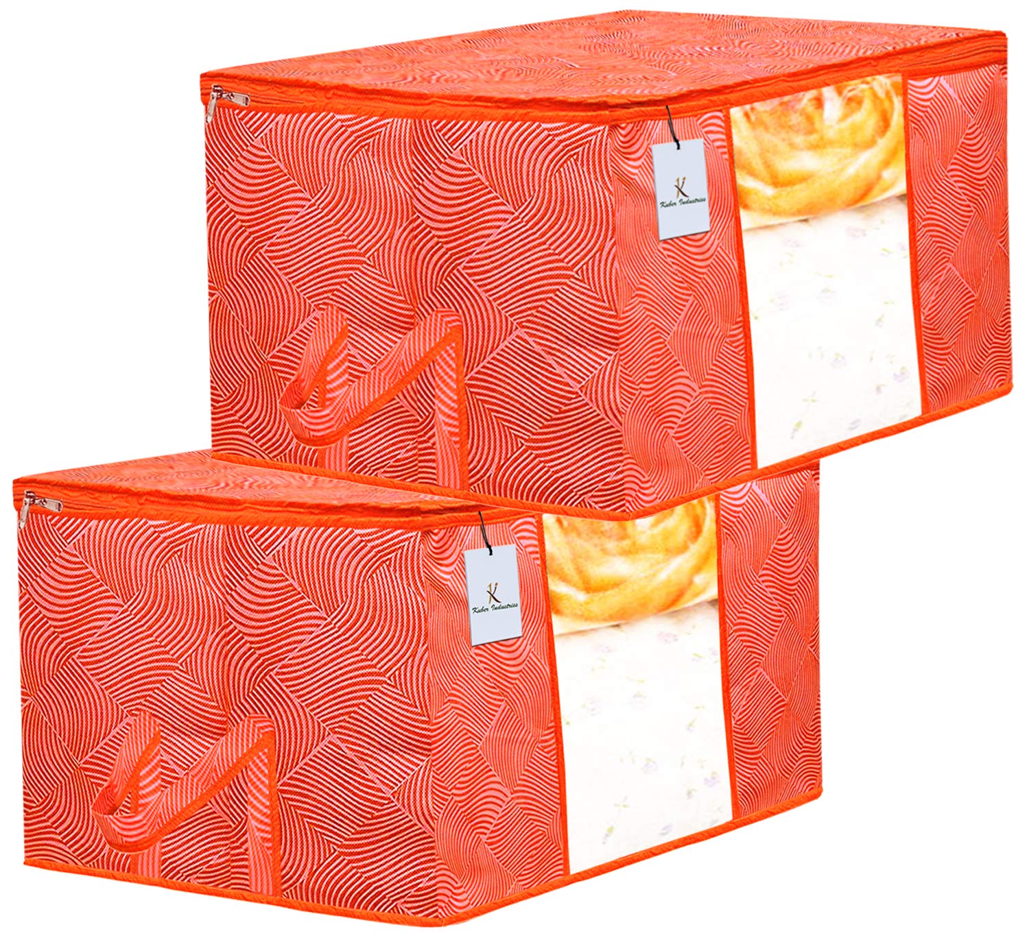 Kuber Industries's Underbed Bag keeps your quilts, blankets, pillows, bedsheets, towels, summer and winter clothing organized. It is perfect for storing those off-season things not needed. It easily goes inside wardrobe, in the bed storage section, shelves, and reduces clutter in wardrobes and closets.The bag can be folded back when not in use. It collapses flat for saving precious storage space.The Storage bag can be kept in your storage beds, closets, wardrobes, storage cabinets. It maximizes your storage space and is perfect for those not-so-frequently used items in your Households.
