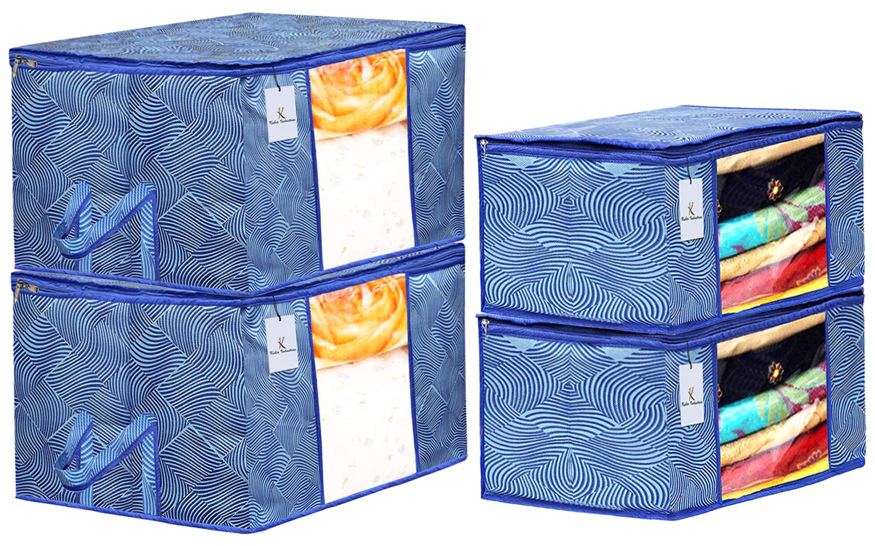 Included Components : | Non Woven 2 Pieces Saree Cover And 2 Pieces Underbed Storage Bag, Storage Organiser, Blanket Cover Combo Set |