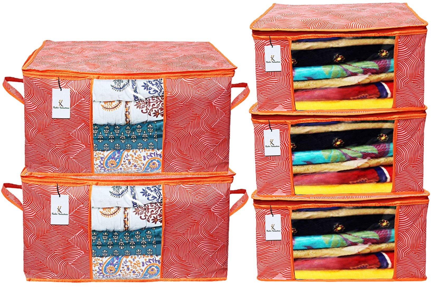 Included Components : | Non Woven 3 Pieces Saree Cover And 2 Pieces Underbed Storage Bag, Storage Organiser, Blanket Cover Combo Set |
