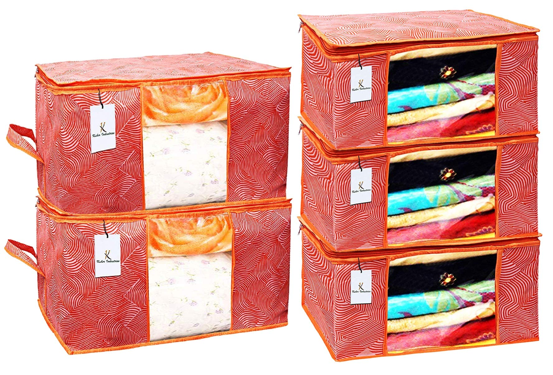 Included Components : | Non Woven 3 Pieces Saree Cover And 2 Pieces Underbed Storage Bag, Storage Organiser, Blanket Cover Combo Set |