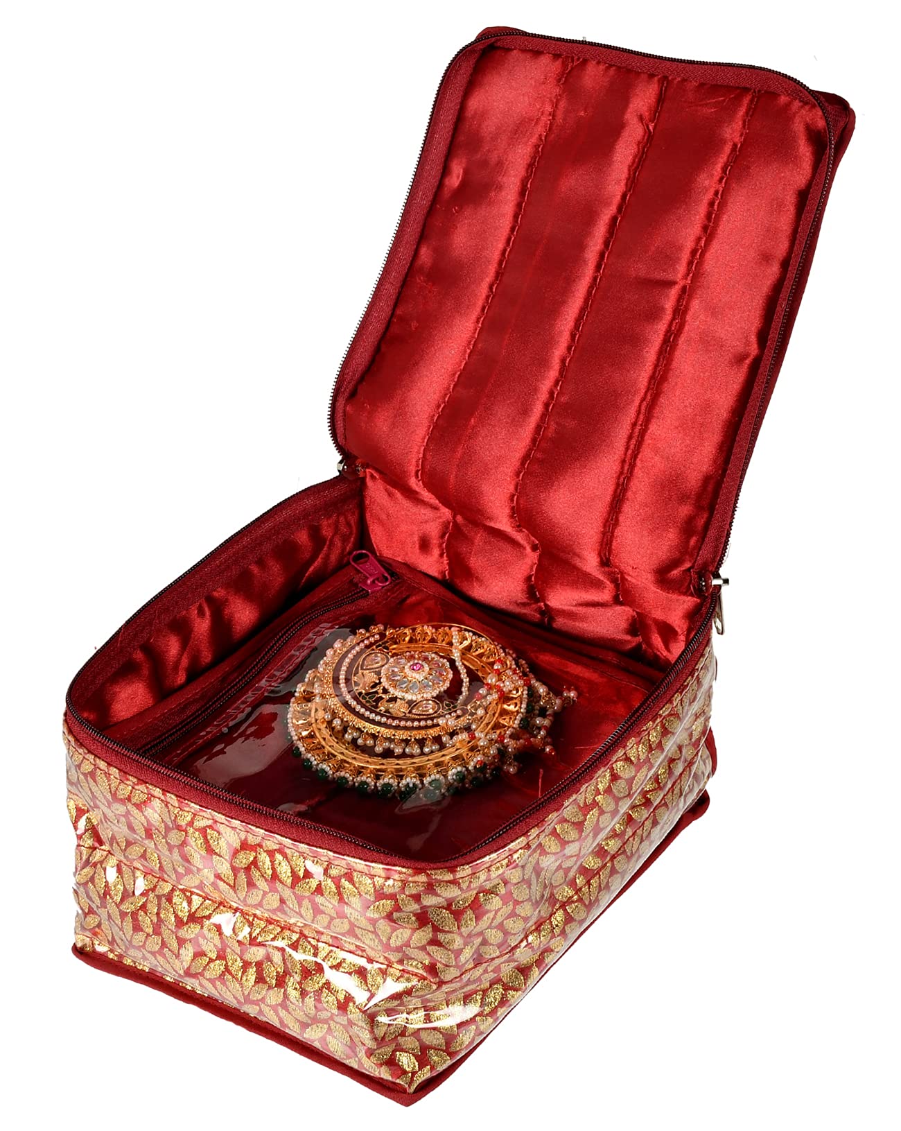 Kuber Industries Jewellery organizer helps organize your costly and favorite Jewellery while travelling or at home. 10 transparent pouches store & multi pockets can store your earrings,Pendants,Necklace,Bracelet, Ring, Watches,Chains,Pearl Jewellery,Accessory,Head rope,Headband or nail polish, cuffs, makeup brushes, Eye shadow etc. It give you the convenience to separately store your Jewellery as per your need. It can also be used for gifting, trousseau packing, in your wardrobe, bank lockers etc.Detailed Specifications: