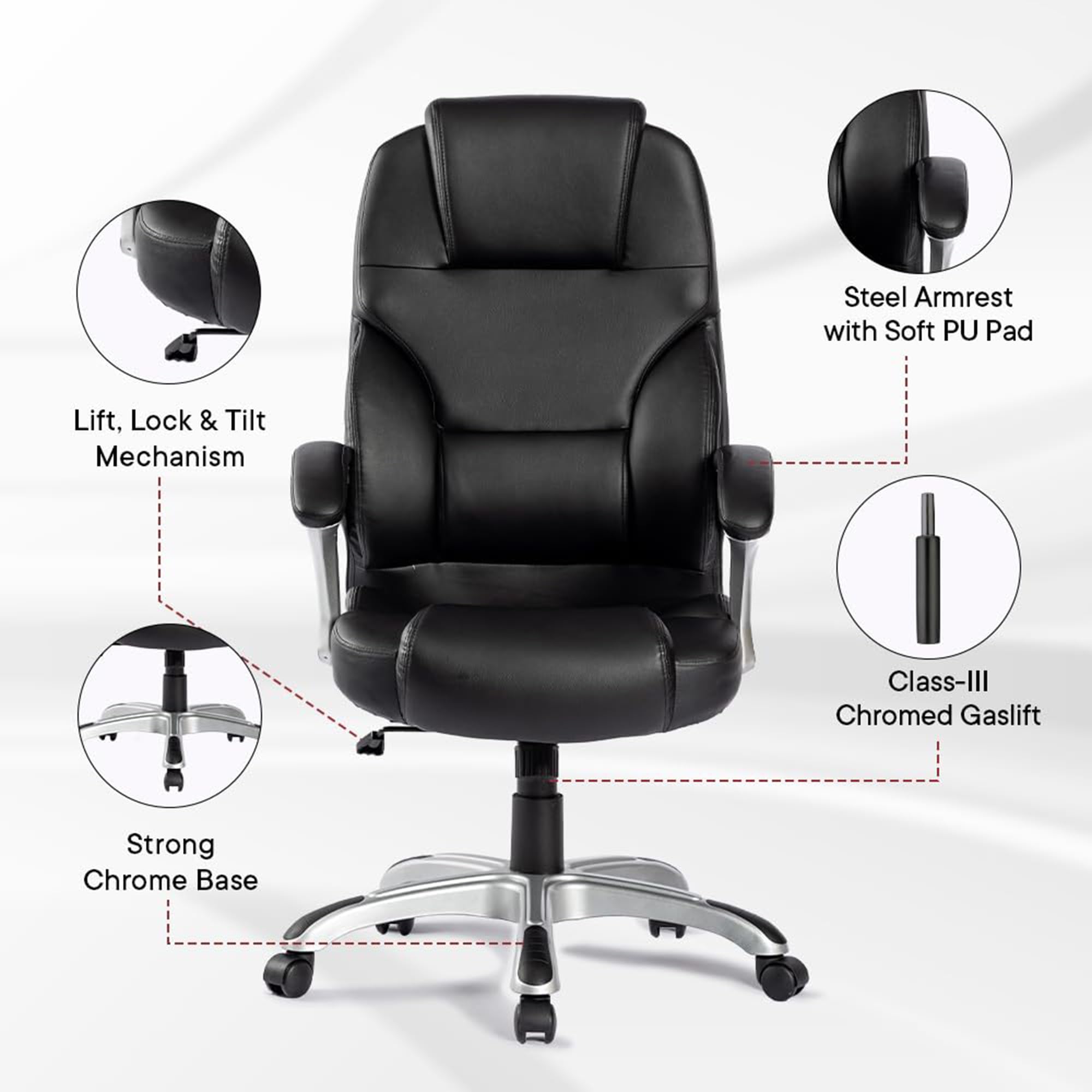 | Metal : | Faux Leather & Steel Chrome Base |