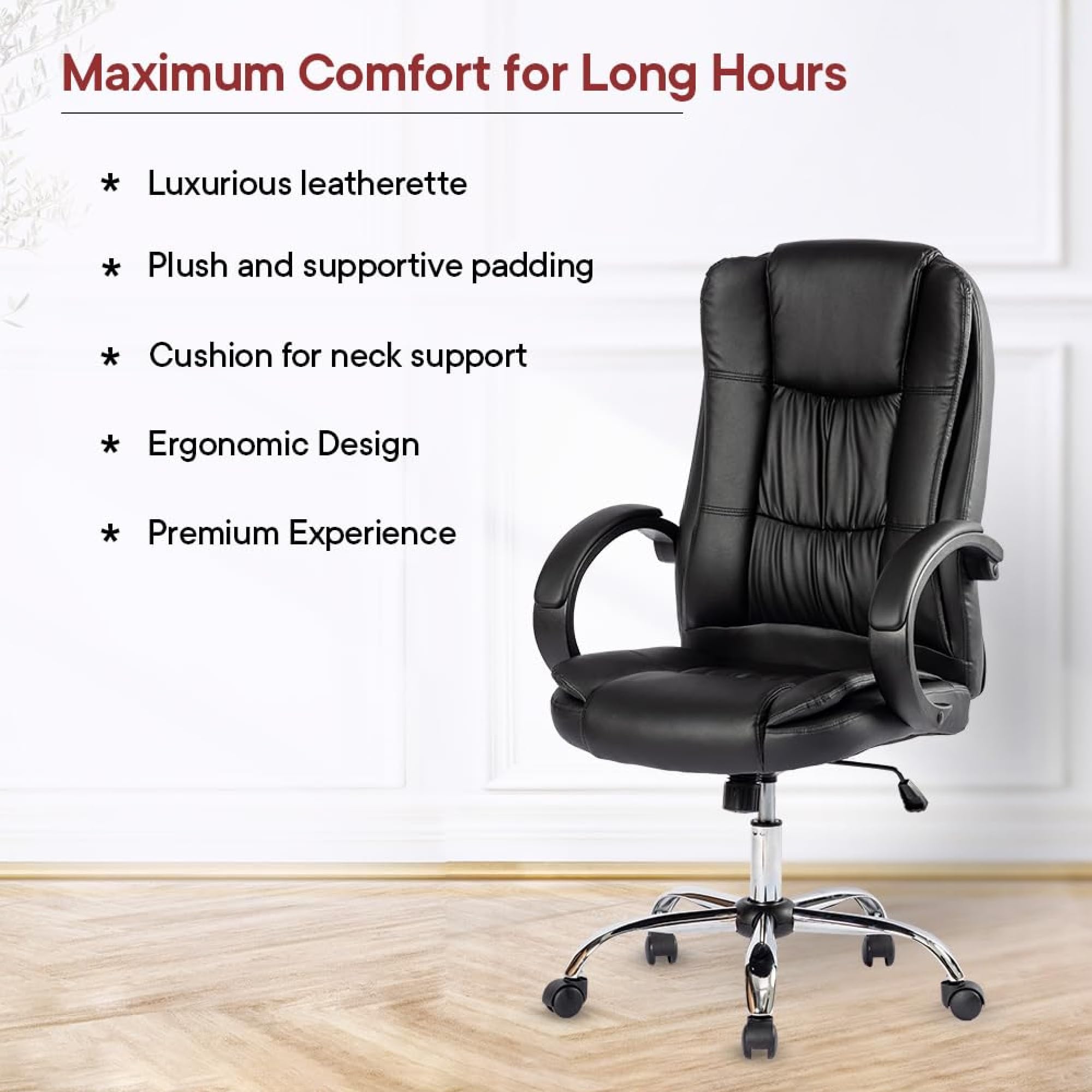 This chair office is perfect for work from home because it has adjustable arms which make sure you stay comfortable all day. Our rotating chair allows easy movement so you can switch tasks without any inconvenience. It is designed for mid-back support which is great for long hours. This chair is also ideal for students who need a sturdy study chair which can keep up with their study sessions. Don't worry about long hours since it makes sure you have the comfort you need.Detailed Specifications: