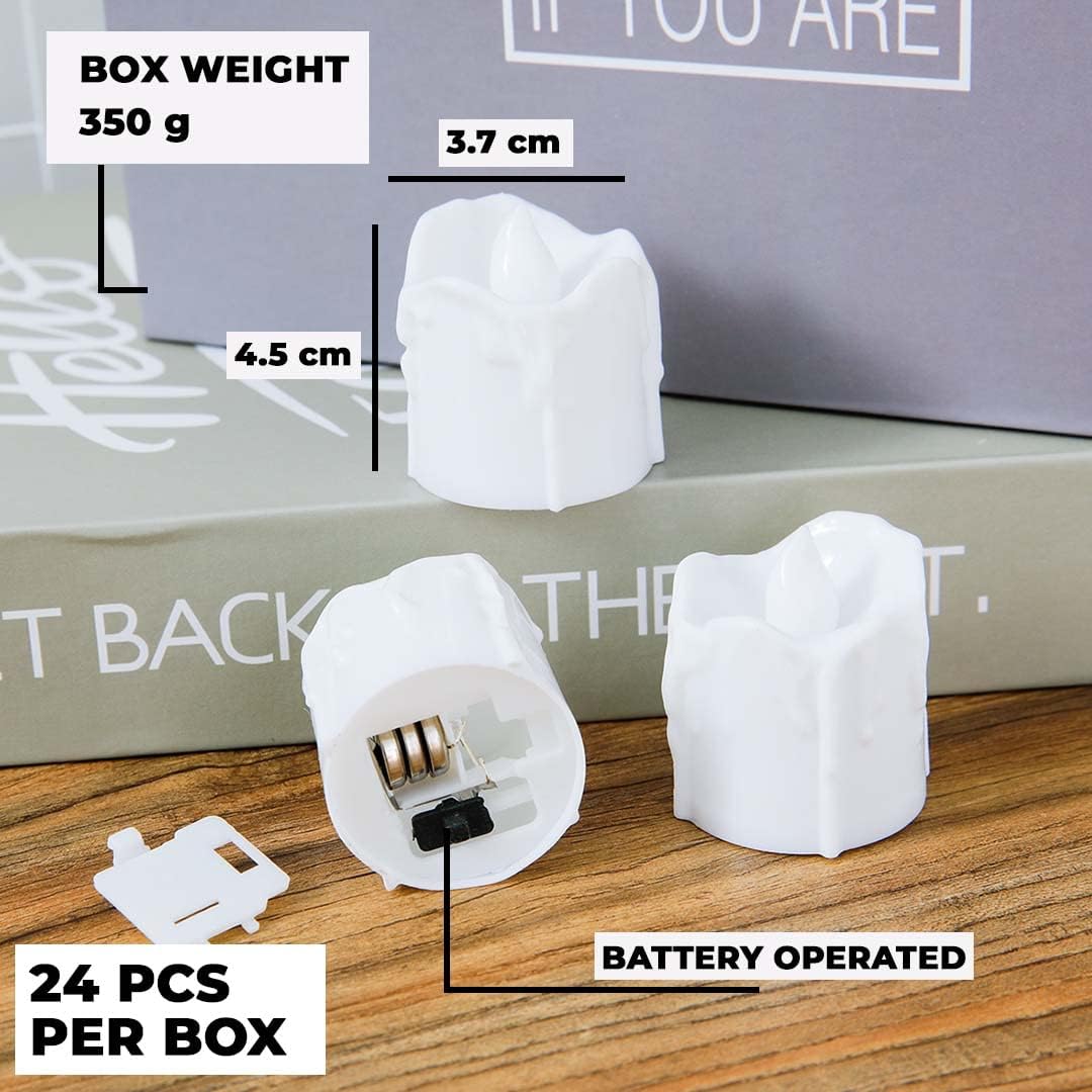 Included Components : | 24 Battery-operated LED candles for home decor,Batteries |
