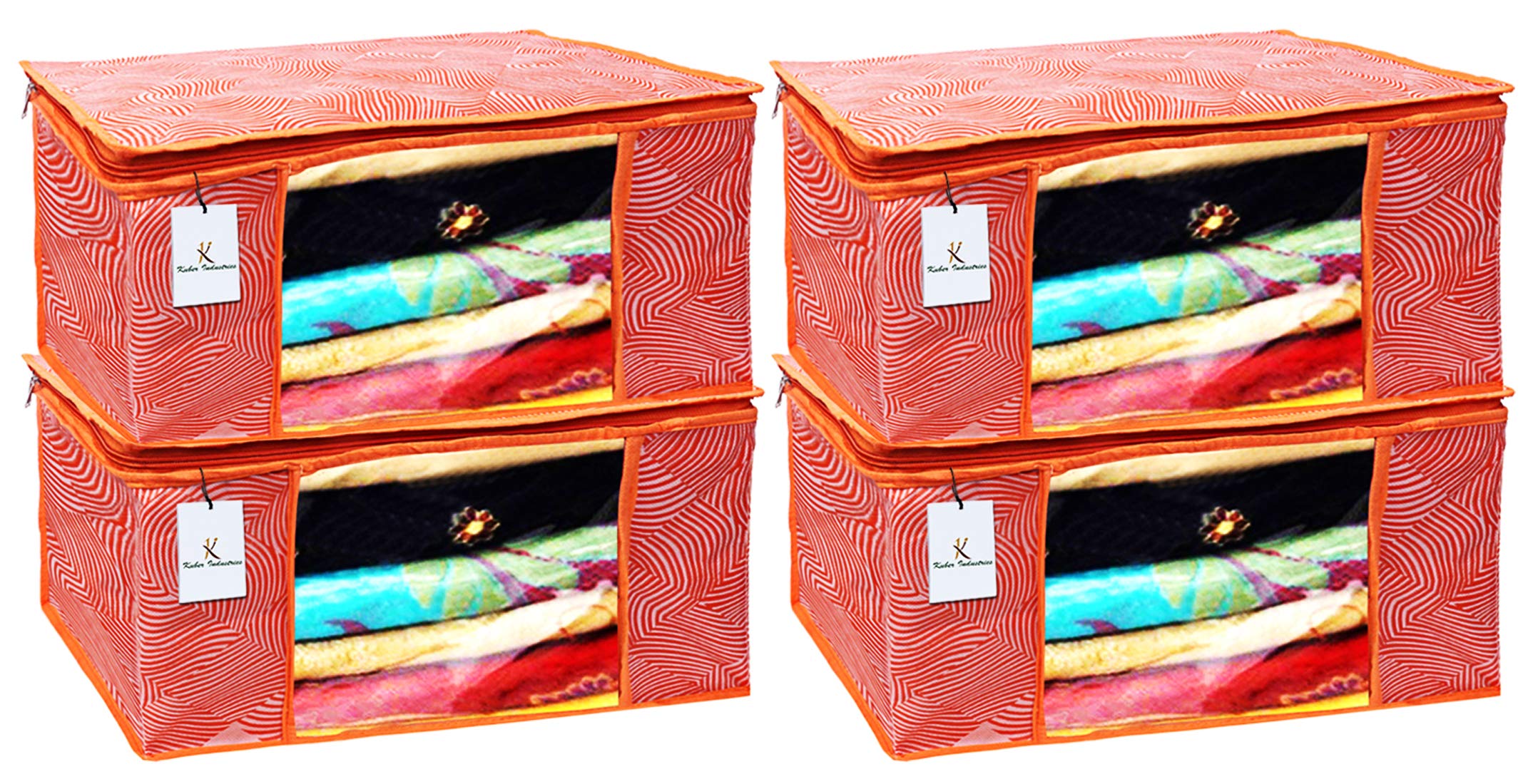 Made from durable, wear and tear-resistant non-woven fabric. Attractive colour and design. Can keep upto - 10 to 15 sarees. Lightweight and flexible saree covers. Carefully stitched to offer additional strength. Transparent see-through window for easy identification of contents. Durable zipper for easy opening and closing. Long life high quality saree cover bag for organizing your costly and favourite sarees. Package contents: 4 pieces saree covers. Colour- orange, leheriya design . Made from durable, wear and tear-resistant non-woven fabric. Can keep upto - 10 to 15 sarees. Lightweight and flexible saree covers. Carefully stitched to offer additional strength. Transparent see-through window for easy identification of contents. Durable zipper for easy opening and closing. Long life high quality saree cover bag for organizing your costly and favourite sarees.Detailed Specifications: