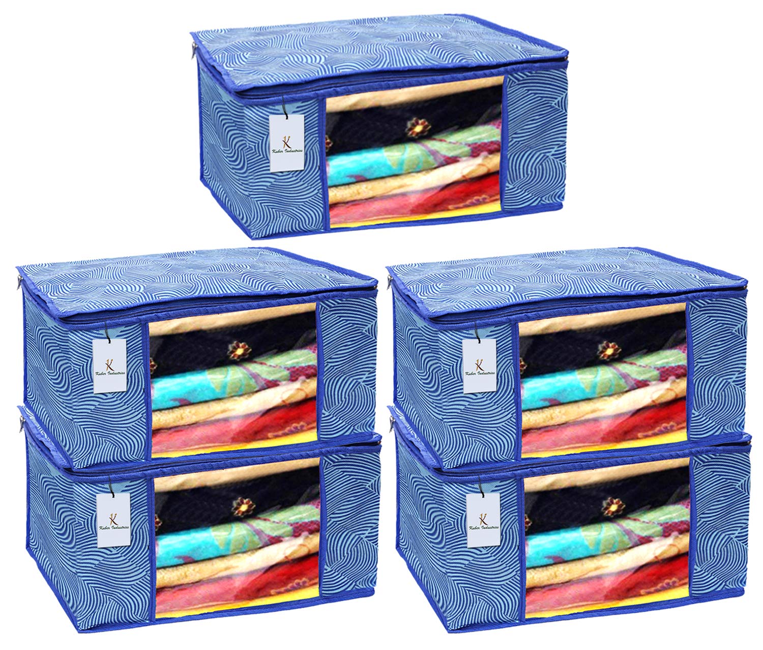 Made from durable, wear and tear-resistant non-woven fabric. Attractive colour and design. Can keep upto - 10 to 15 sarees. Lightweight and flexible saree covers. Carefully stitched to offer additional strength. Transparent see-through window for easy identification of contents. Durable zipper for easy opening and closing. Long life high quality saree cover bag for organizing your costly and favourite sarees. Package contents: 5 pieces saree covers. Colour- royal blue, leheriya design . Made from durable, wear and tear-resistant non-woven fabric. Can keep upto - 10 to 15 sarees. Lightweight and flexible saree covers. Carefully stitched to offer additional strength. Transparent see-through window for easy identification of contents. Durable zipper for easy opening and closing. Long life high quality saree cover bag for organizing your costly and favourite sarees.Detailed Specifications: