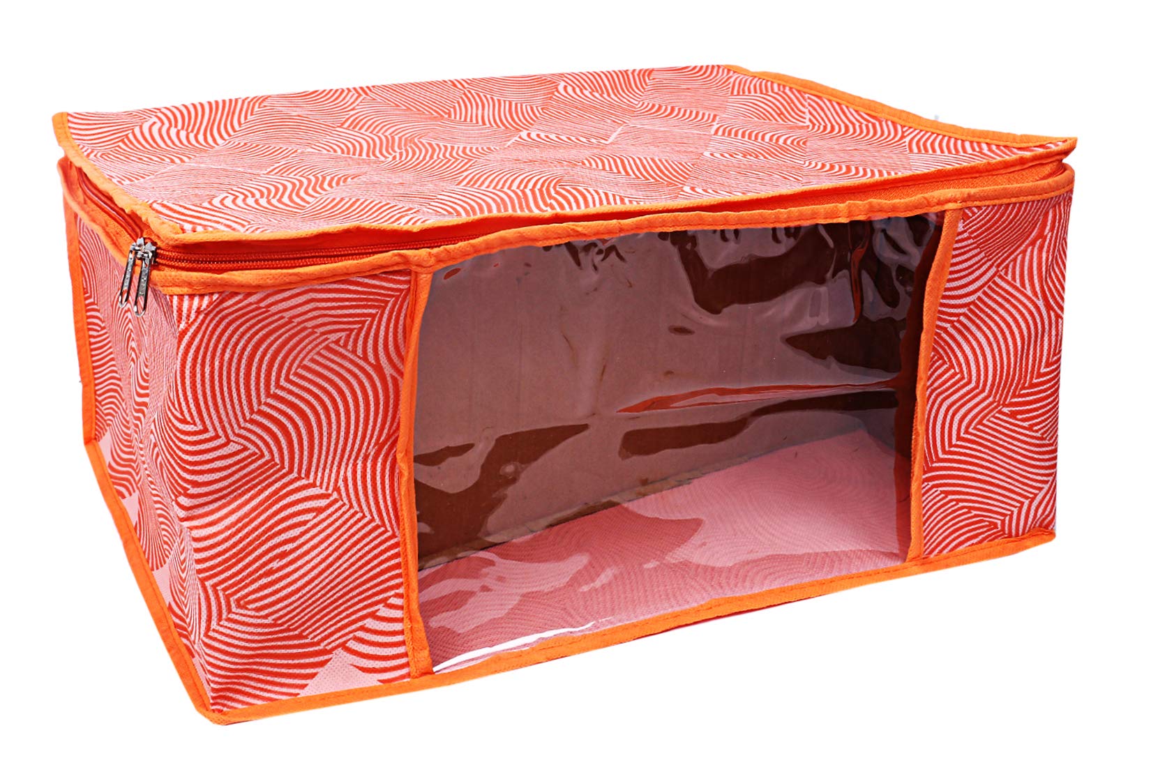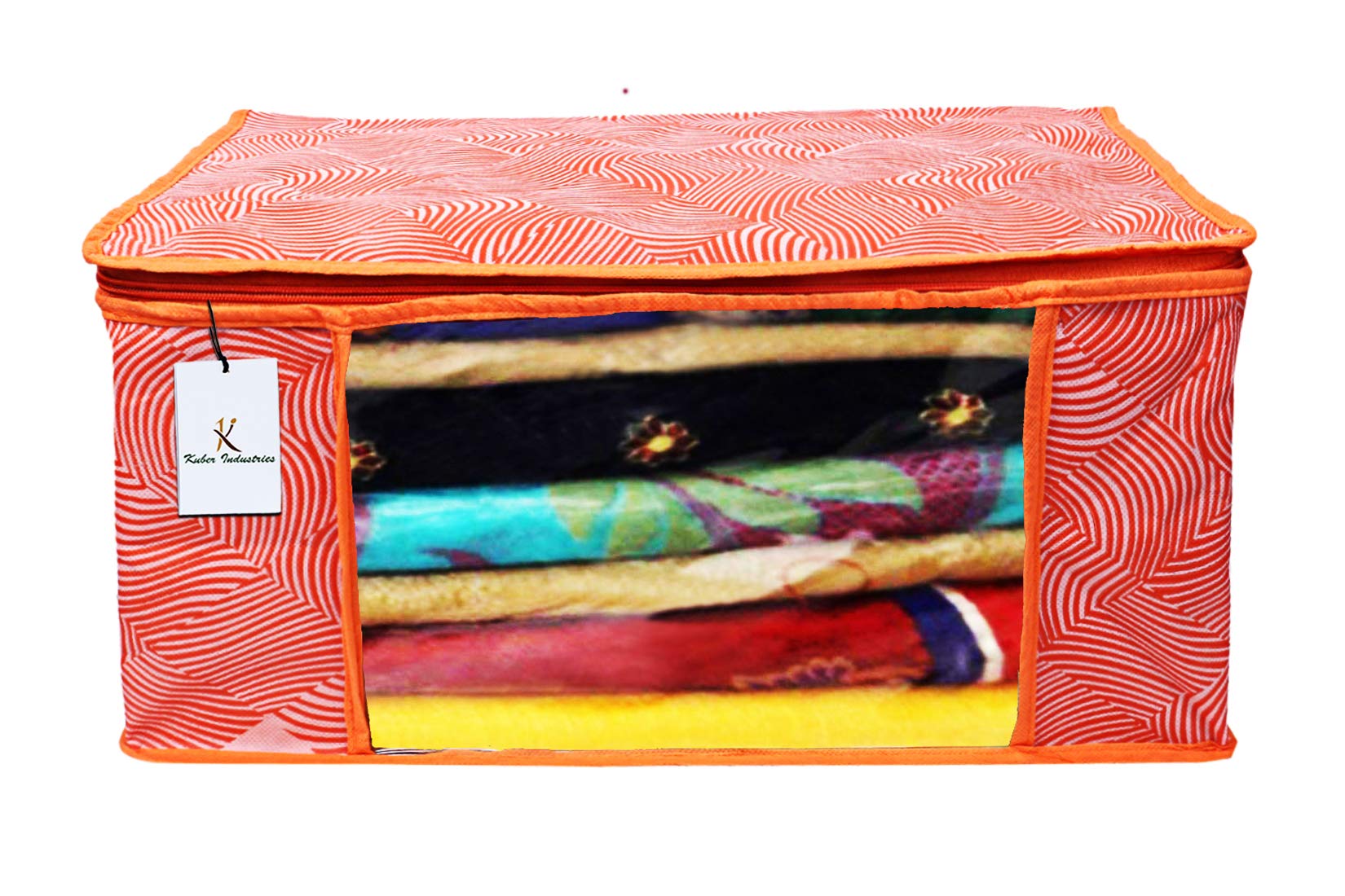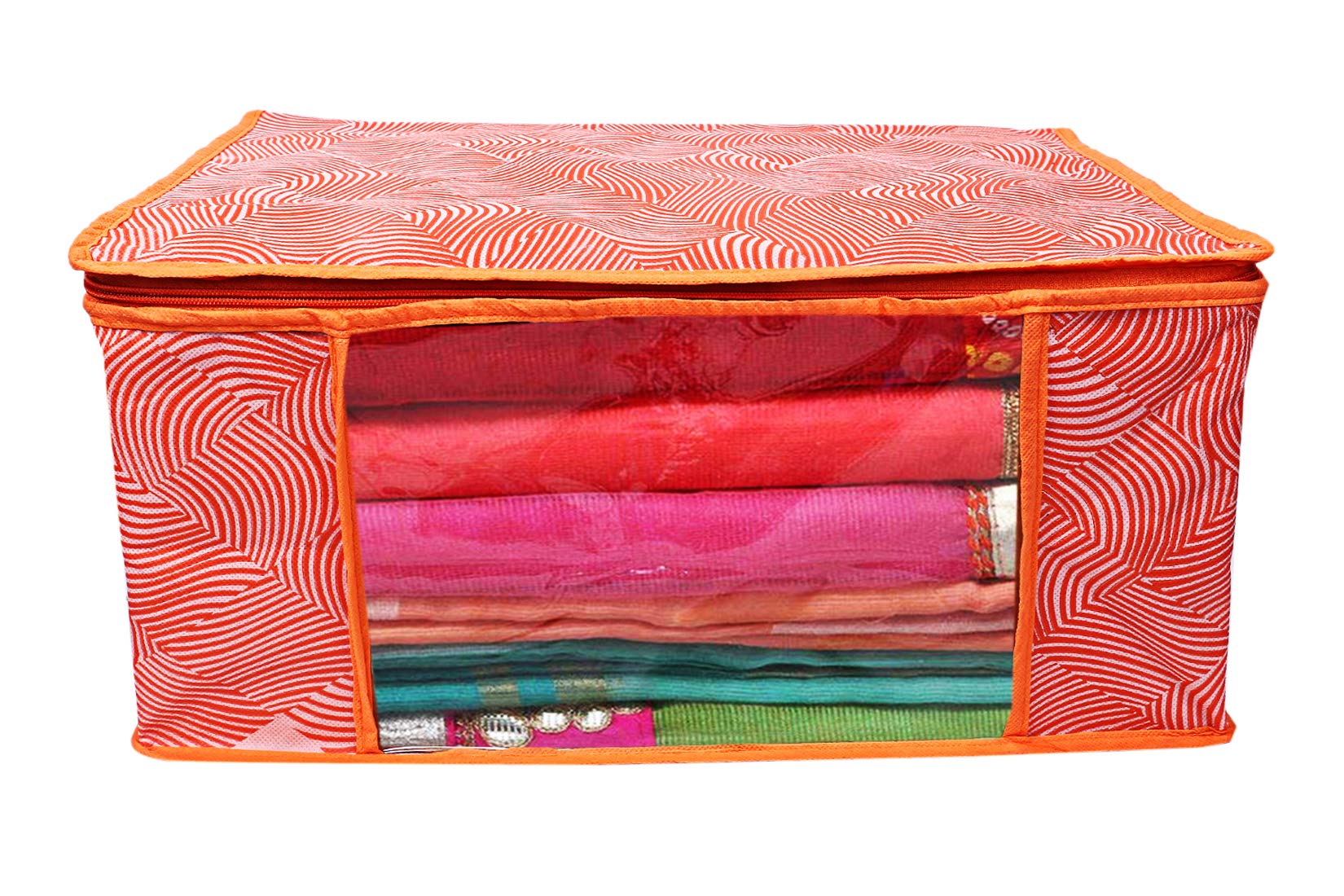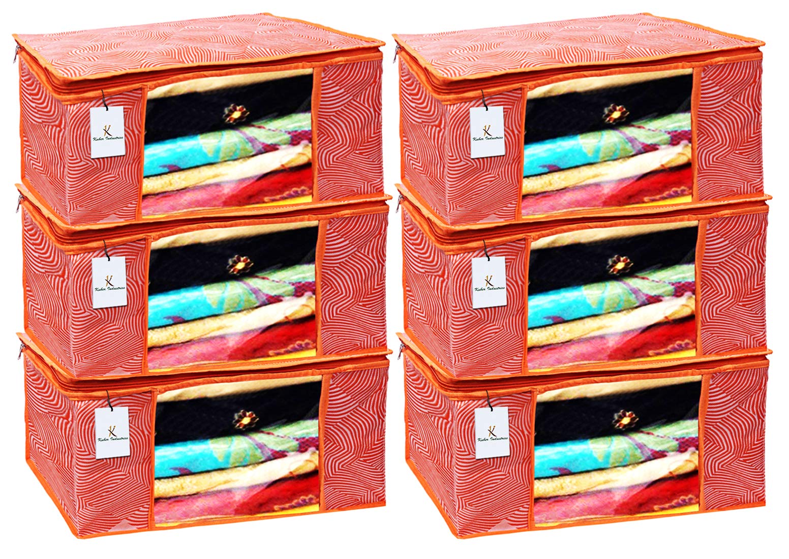 Made from durable, wear and tear-resistant non-woven fabric. Attractive colour and design. Can keep upto - 10 to 15 sarees. Lightweight and flexible saree covers. Carefully stitched to offer additional strength. Transparent see-through window for easy identification of contents. Durable zipper for easy opening and closing. Long life high quality saree cover bag for organizing your costly and favourite sarees. Package contents: 6 pieces saree covers. Colour- orange, leheriya design . Made from durable, wear and tear-resistant non-woven fabric. Can keep upto - 10 to 15 sarees. Lightweight and flexible saree covers. Carefully stitched to offer additional strength. Transparent see-through window for easy identification of contents. Durable zipper for easy opening and closing. Long life high quality saree cover bag for organizing your costly and favourite sarees.Detailed Specifications: