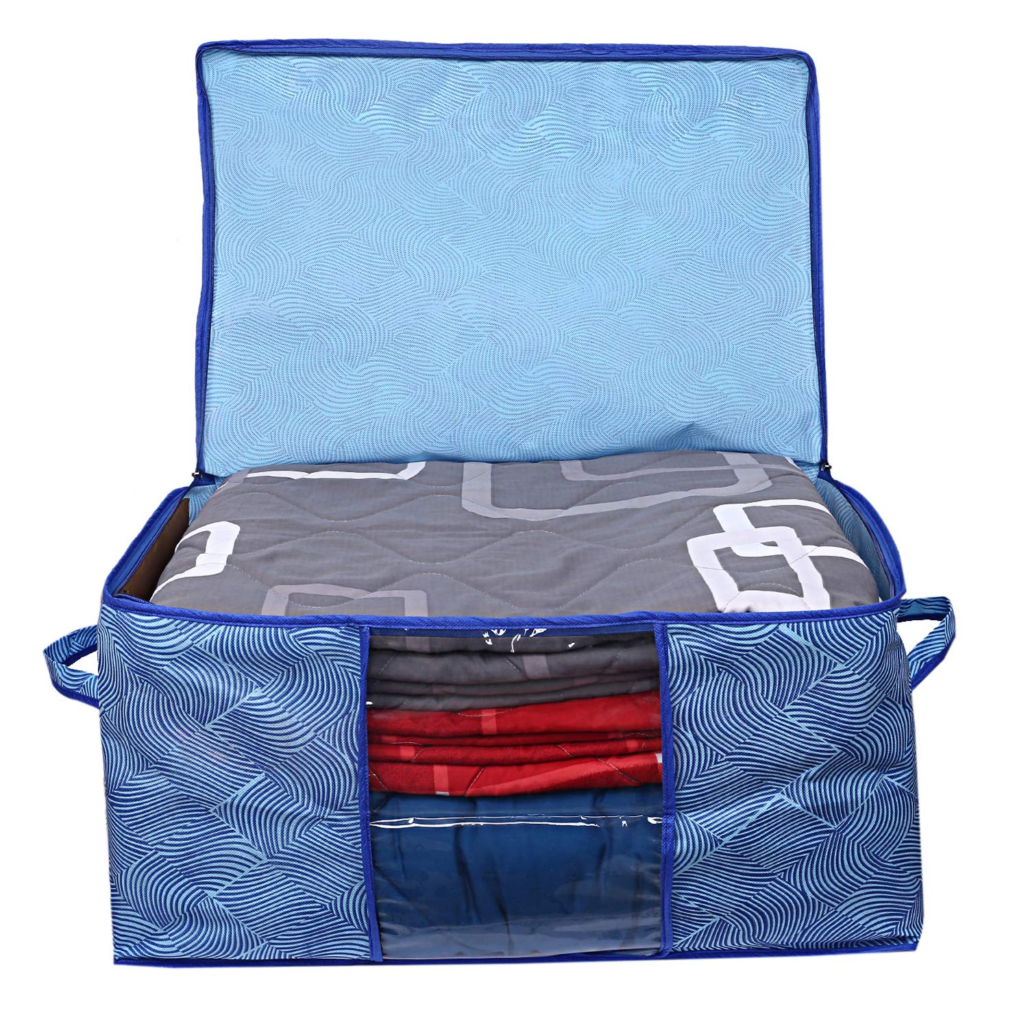 Folding, durable and non woven fabric, easy storage fabric sweater clothes blanket storage bag suitable for storing clothes, blankets, sweater, quilts, coats and other. Easy to organize all your stuff and take out your clothes from mildew, dust, moisture, insects, anti-discoloration as they are well stored. Material - non woven fabric, colour - royal blue, dimensions - 65 x 47 x 33 cm. Design- plain. Package contents: 5 underbed storage bag. Carefully stitched to offer additional strength. Transparent see-through window for easy identification of contents.Detailed Specifications: