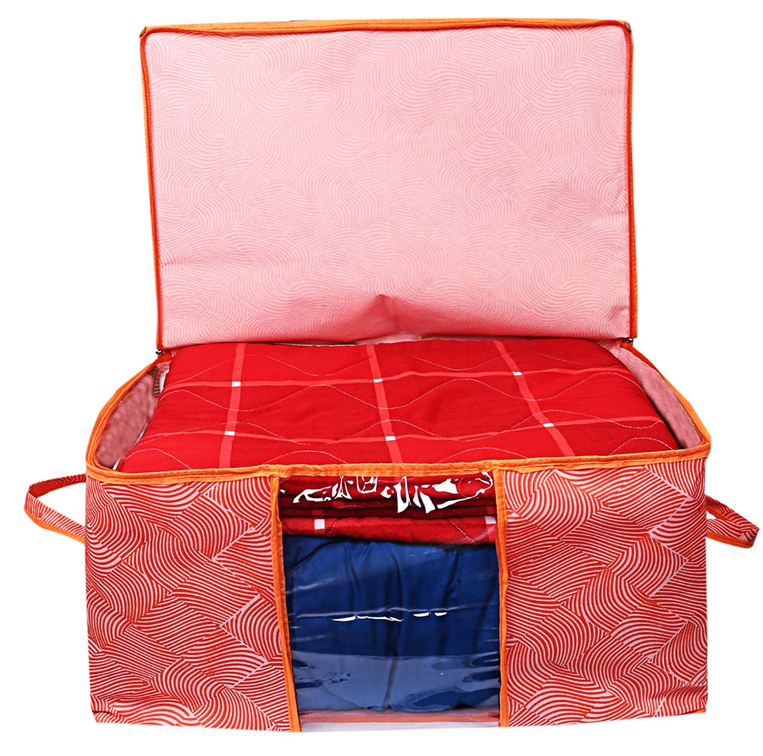 Folding, durable and non woven fabric, easy storage fabric sweater clothes blanket storage bag suitable for storing clothes, blankets, sweater, quilts, coats and other. Easy to organize all your stuff and take out your clothes from mildew, dust, moisture, insects, anti-discoloration as they are well stored. Material - non woven fabric, colour - orange, dimensions - 65 x 47 x 33 cm. Design- plain. Package contents: 3 underbed storage bag. Carefully stitched to offer additional strength. Transparent see-through window for easy identification of contents.Detailed Specifications: