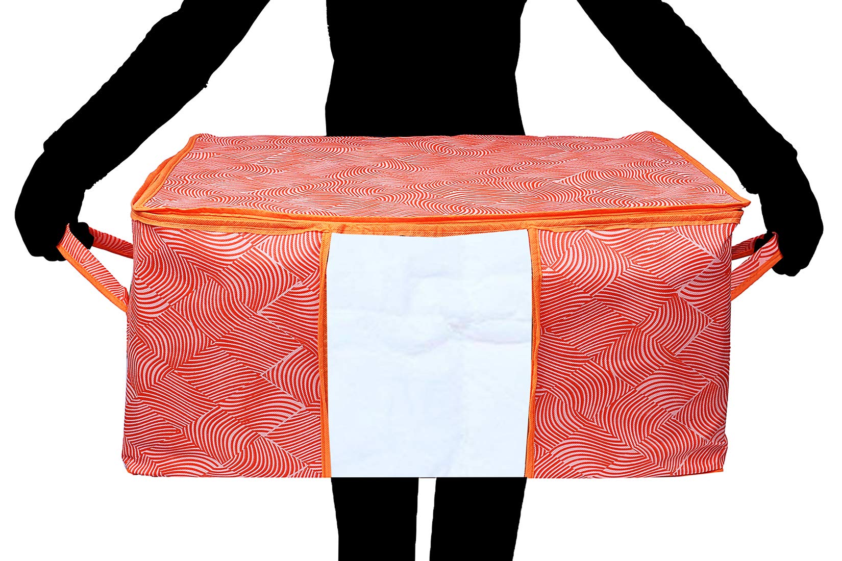 Folding, durable and non woven fabric, easy storage fabric sweater clothes blanket storage bag suitable for storing clothes, blankets, sweater, quilts, coats and other. Easy to organize all your stuff and take out your clothes from mildew, dust, moisture, insects, anti-discoloration as they are well stored. Material - non woven fabric, colour - orange, dimensions - 65 x 47 x 33 cm. Design- plain. Package contents: 5 underbed storage bag. Carefully stitched to offer additional strength. Transparent see-through window for easy identification of contents.Kuber Industries is a customer-loved brand that brings you everything you need to make a house a home. Right from nifty storage solutions to smart kitchen essentials, our products are known for their premium and durable quality.