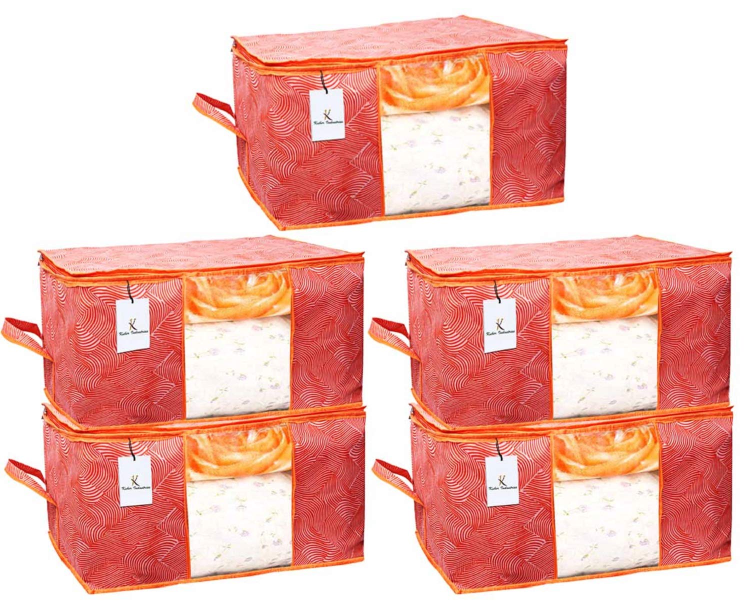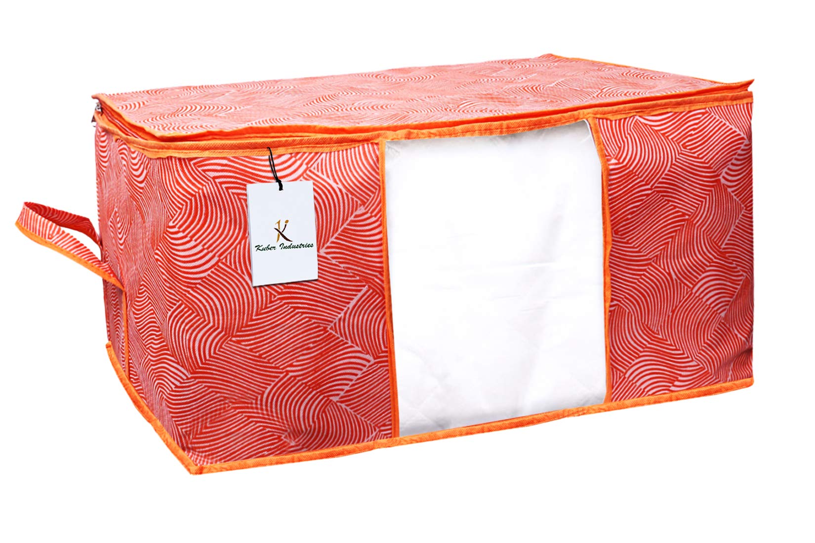 Folding, durable and non woven fabric, easy storage fabric sweater clothes blanket storage bag suitable for storing clothes, blankets, sweater, quilts, coats and other. Easy to organize all your stuff and take out your clothes from mildew, dust, moisture, insects, anti-discoloration as they are well stored. Material - non woven fabric, colour - orange, dimensions - 65 x 47 x 33 cm. Design- plain. Package contents: 5 underbed storage bag. Carefully stitched to offer additional strength. Transparent see-through window for easy identification of contents.Kuber Industries is a customer-loved brand that brings you everything you need to make a house a home. Right from nifty storage solutions to smart kitchen essentials, our products are known for their premium and durable quality.