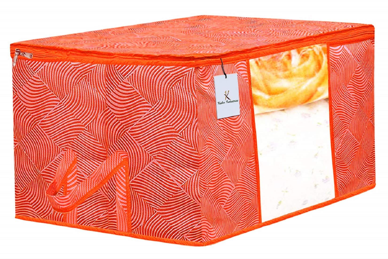 Kuber Industries's Underbed Bag keeps your quilts, blankets, pillows, bedsheets, towels, summer and winter clothing organized. It is perfect for storing those off-season things not needed. It easily goes inside wardrobe, in the bed storage section, shelves, and reduces clutter in wardrobes and closets.The bag can be folded back when not in use. It collapses flat for saving precious storage space.The Storage bag can be kept in your storage beds, closets, wardrobes, storage cabinets. It maximizes your storage space and is perfect for those not-so-frequently used items in your Households.
