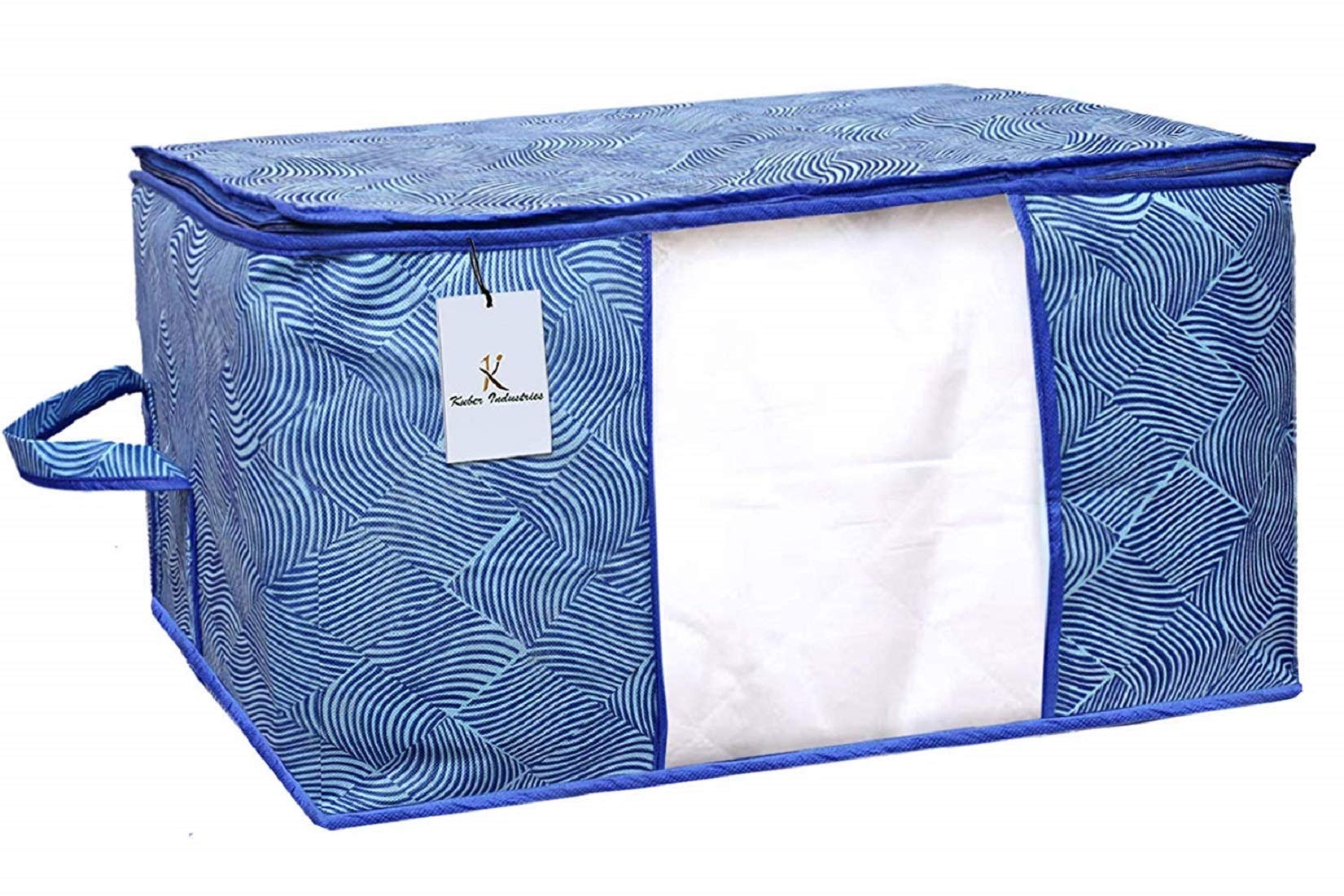 Kuber Industries's Underbed Bag keeps your quilts, blankets, pillows, bedsheets, towels, summer and winter clothing organized. It is perfect for storing those off-season things not needed. It easily goes inside wardrobe, in the bed storage section, shelves, and reduces clutter in wardrobes and closets.The bag can be folded back when not in use. It collapses flat for saving precious storage space.The Storage bag can be kept in your storage beds, closets, wardrobes, storage cabinets. It maximizes your storage space and is perfect for those not-so-frequently used items in your Households.