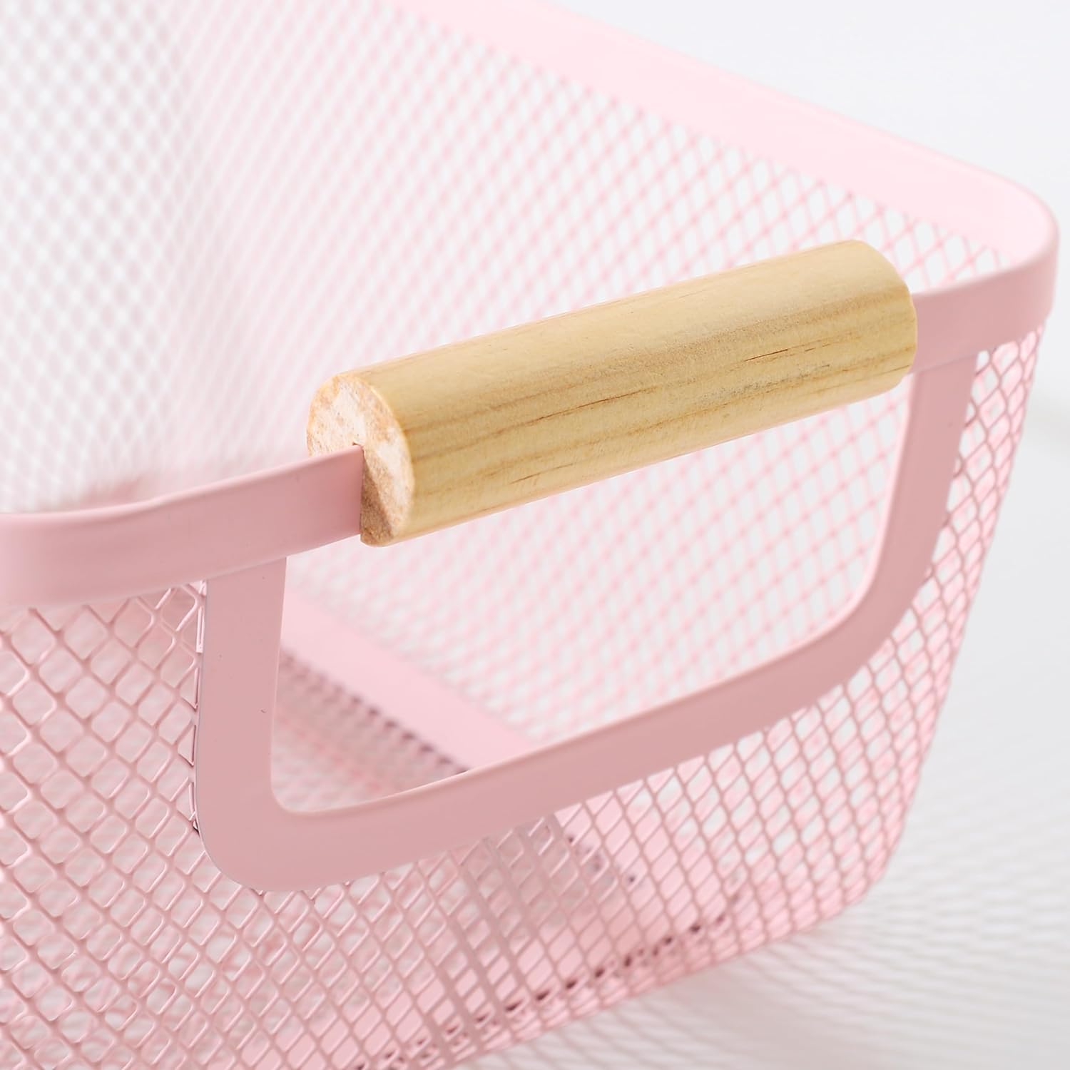 This versatile Kuber Industries basket for storage in pink is the perfect addition as your baskets for organizing home and kitchen organizer. Made with metal mesh wire and a sturdy wooden handle, this basket is not only lightweight but also durable. The anti-rust surface ensures a long-lasting product that is easy to clean. With a stable base and wider space, this basket provides ample storage capacity for all your needs. The Kuber Industries storage basket is a multipurpose organizer ideal for use as fruit basket and vegetable basket and for storing clothes, toiletries, books, and more. Whether you need to tidy up your pantry, living room, or bathroom, this basket is the ideal solution. Customers love the usefulness and sturdiness of this basket. The packaging is also top-notch, ensuring a presentable product upon delivery. With a reliable brand like Kuber Industries , you can trust in the quality this basket provides. For those concerned about storage space and design, this basket delivers on both fronts. Its pink color and exquisite workmanship make it a stylish addition to any room. The fast drainage and breathable storage ensure your items stay fresh and dry. With a focus on convenience and mobility, this Kuber Industries storage basket is a must-have for any home. Whether you are a kid, daughter, or mother, this basket caters to your organizational needs. From the kitchen to the cupboard, this basket is the perfect solution for your storage challenges.Detailed Specifications:
