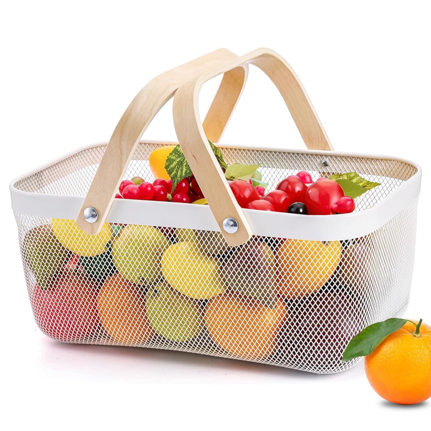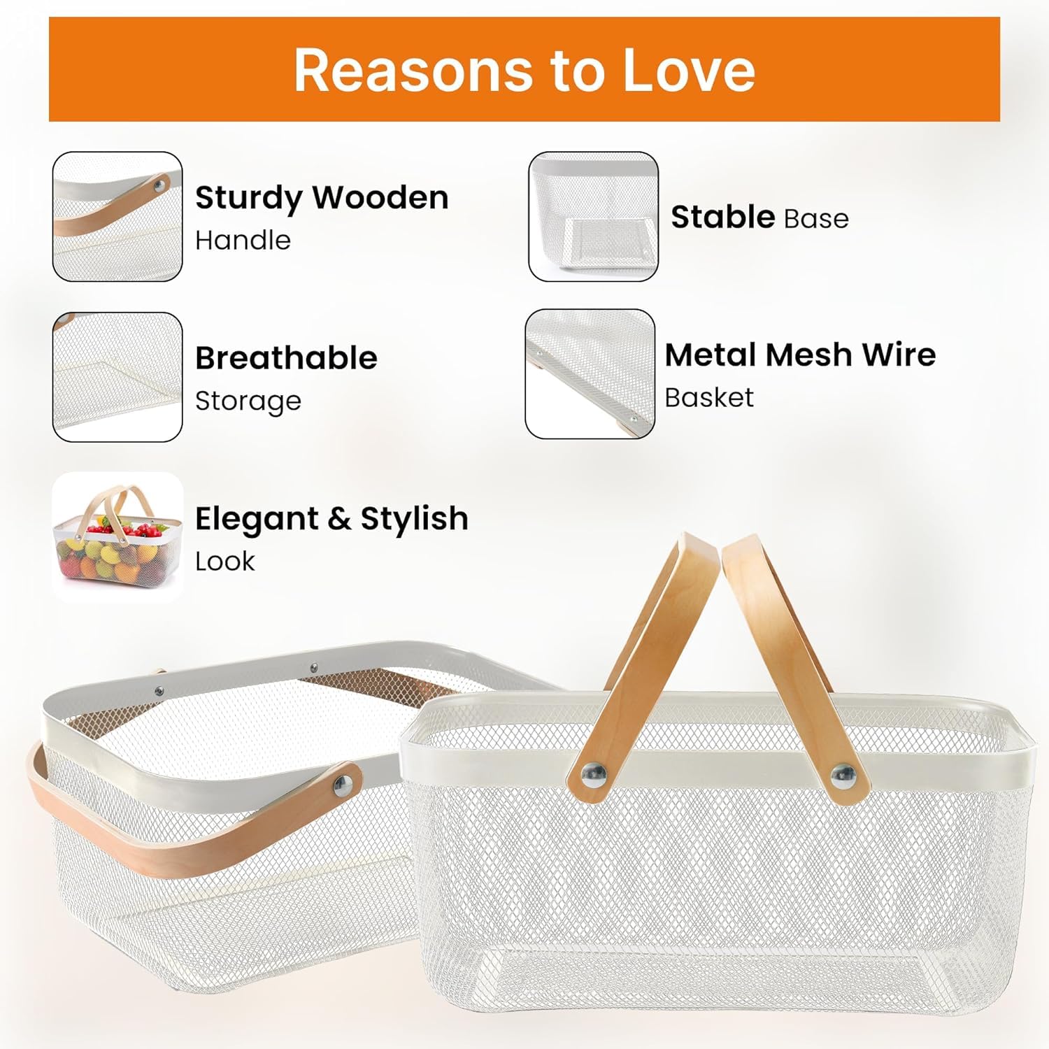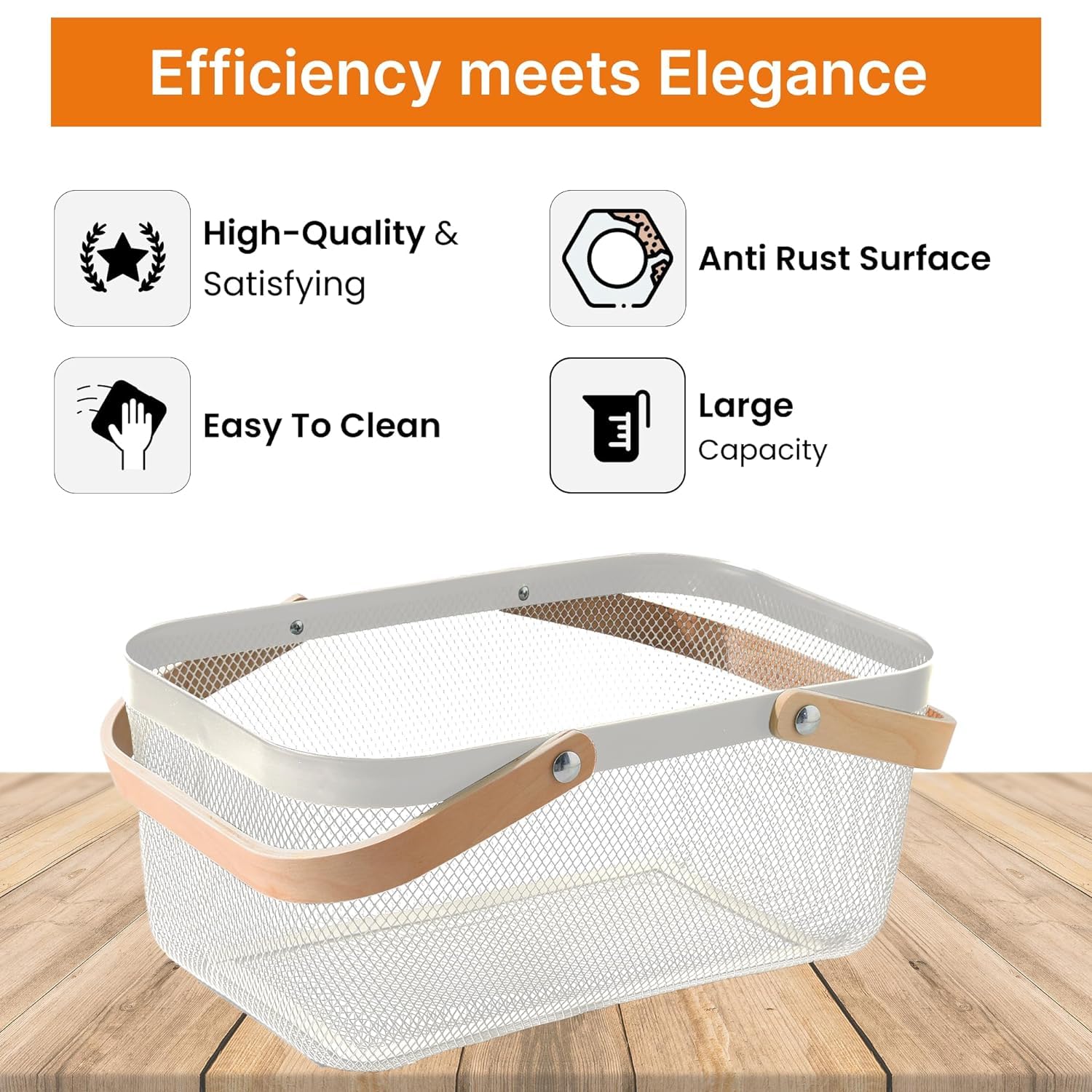 This versatile Homestic basket for storage in white is the perfect addition as your basket for organizing home and also your kitchen organizer. Made with metal mesh wire and a sturdy wooden handle, this basket is not only lightweight but also durable. The anti-rust surface ensures a long-lasting product that is easy to clean. With a stable base and wider space, this basket provides ample storage capacity for all your needs. The Homestic storage basket is a multifunctional organizer ideal for use as fruit basket and vegetable basket and for storing clothes, toiletries, books, and more. Whether you need to tidy up your pantry, living room, or bathroom, this basket is the ideal solution. Customers love the usefulness and sturdiness of this basket. The packaging is also top-notch, ensuring a presentable product upon delivery. With a reliable brand like Homestic , you can trust in the quality this basket provides. For those concerned about storage space and design, this basket delivers on both fronts. Its elegant white color and exquisite workmanship make it a stylish addition to any room. The fast drainage and breathable storage ensure your items stay fresh and dry. With a focus on convenience and mobility, this Homestic storage basket is a must-have for any home. Whether you are a kid, daughter, or mother, this basket caters to your organizational needs. From the kitchen to the cupboard, this basket is the perfect solution for your storage challenges.Detailed Specifications: