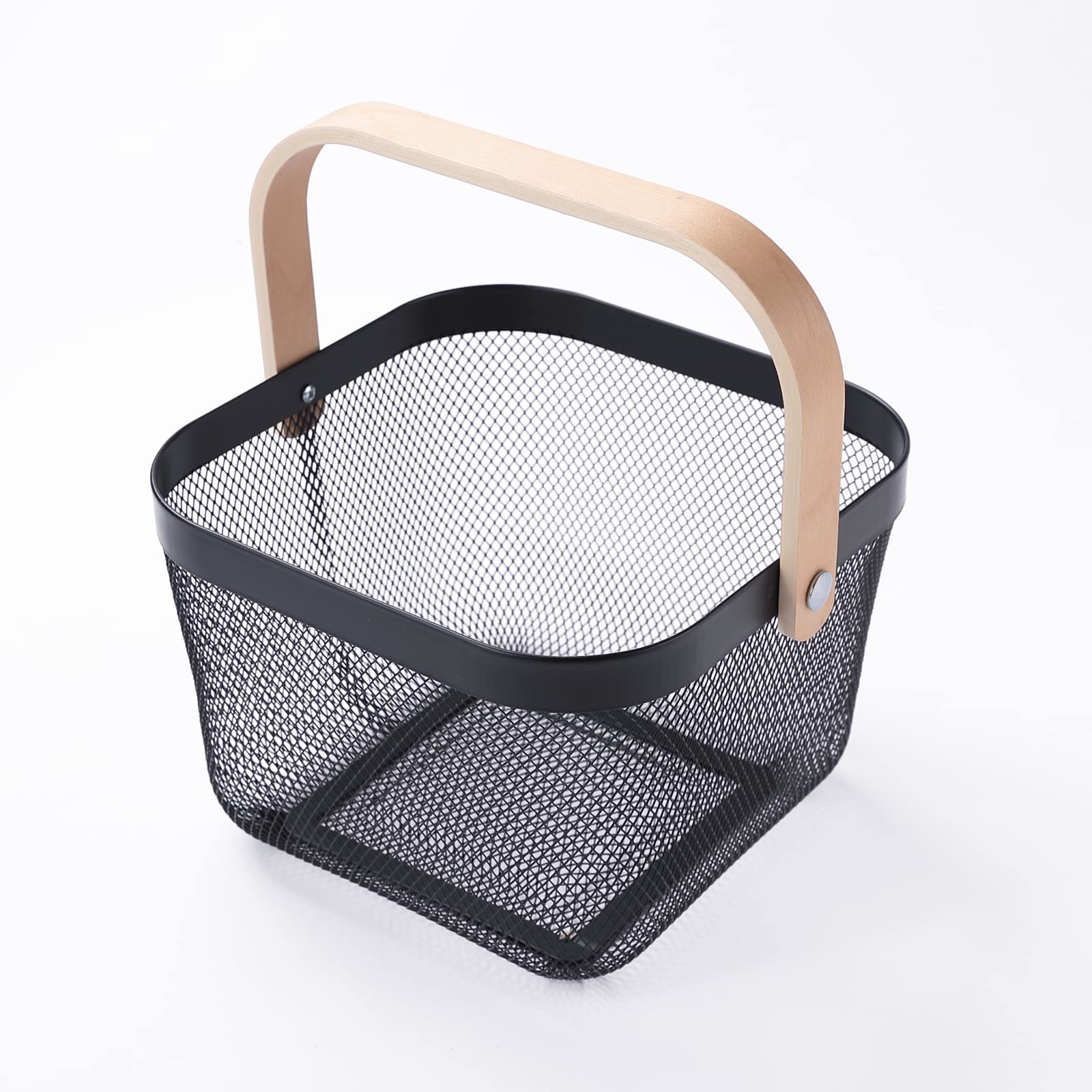 Homestic basket is a versatile and useful storage solution that can be used for a variety of household items. The metal mesh cube design allows for easy visibility and access to the contents, while the wooden handle adds a natural and stylish touch. It's great that it can be used in multiple rooms, such as the kitchen, bathroom, office, and garage, and can store a wide range of items from snacks to kitchen utensils.Detailed Specifications: