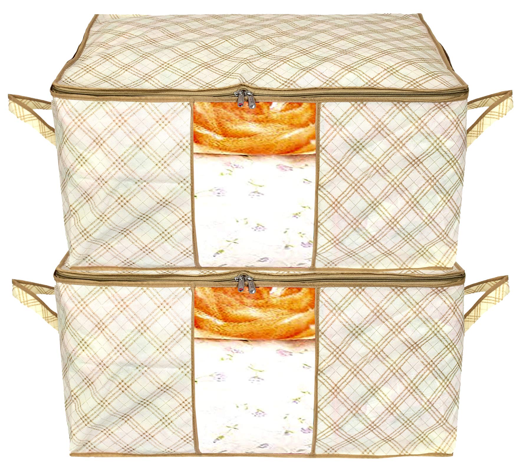 Kuber Industries Under bed storage bag is made of non-woven material so this is very durable, long-lasting and multipurpose. This is used to store blankets, clothes, quilts, coats and other garments for long periods of time. This can be folded back when not in use and it collapses flat for saving precious storage space. This has two way zipper and two soft grab handles makes it easy to pull out or replace from under the bed. This has a large transparent sheet by which you can see what is inside the under bed bag remotely. This is the best space saver product.Kuber Industries is a customer-loved brand that brings you everything you need to make a house a home. Right from nifty storage solutions to smart kitchen essentials, our products are known for their premium and durable quality.