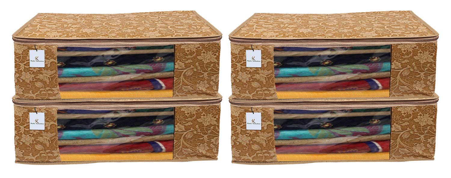 Made from durable, wear and tear-resistant non-woven metalic fabric. Attractive color and design. Can keep upto - 10 to 15 sarees. Lightweight and flexible saree covers. Carefully stitched to offer additional strength. Transparent see-through window for easy identification of contents. Durable zipper for easy opening and closing. Long life high quality saree cover bag for organizing your costly and favourite sarees. Package contents: 4 pieces saree covers. Color- beige, metalic flower design. Made from durable, wear and tear-resistant non-woven fabric. Can keep upto - 8 to 10 sarees. Lightweight and flexible saree covers. Carefully stitched to offer additional strength. Transparent see-through window for easy identification of contents. Durable zipper for easy opening and closing. Long life high quality saree cover bag for organizing your costly and favourite sarees.