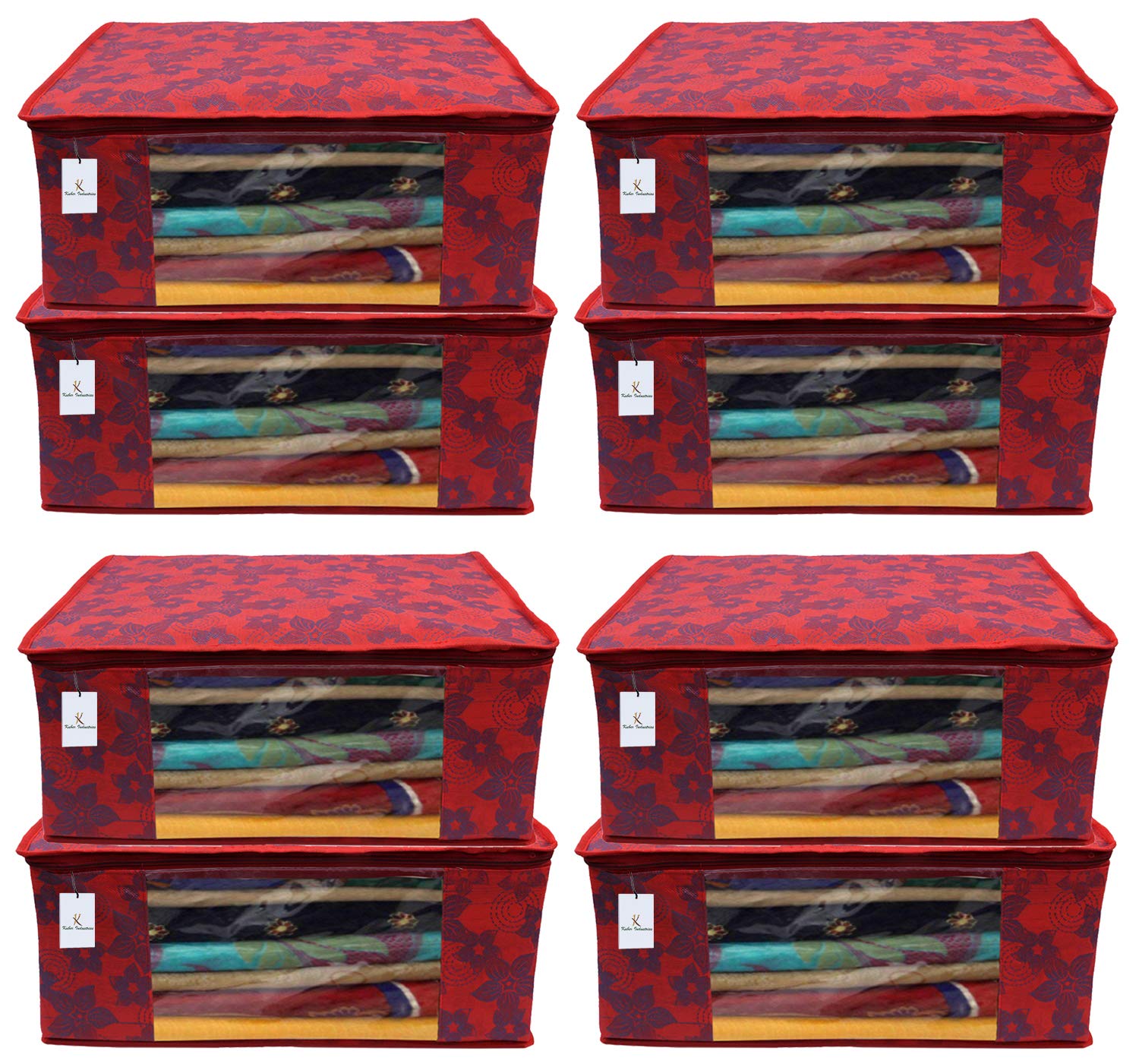 Made from durable, wear and tear-resistant non-woven metalic fabric. Attractive color and design. Can keep upto - 10 to 15 sarees. Lightweight and flexible saree covers. Carefully stitched to offer additional strength. Transparent see-through window for easy identification of contents. Durable zipper for easy opening and closing. Long life high quality saree cover bag for organizing your costly and favourite sarees. Package contents: 8 pieces saree covers. Color- red, metalic flower design. Made from durable, wear and tear-resistant non-woven fabric. Can keep upto - 10 to 15 sarees. Lightweight and flexible saree covers. Carefully stitched to offer additional strength. Transparent see-through window for easy identification of contents. Durable zipper for easy opening and closing. Long life high quality saree cover bag for organizing your costly and favourite sarees.Detailed Specifications: