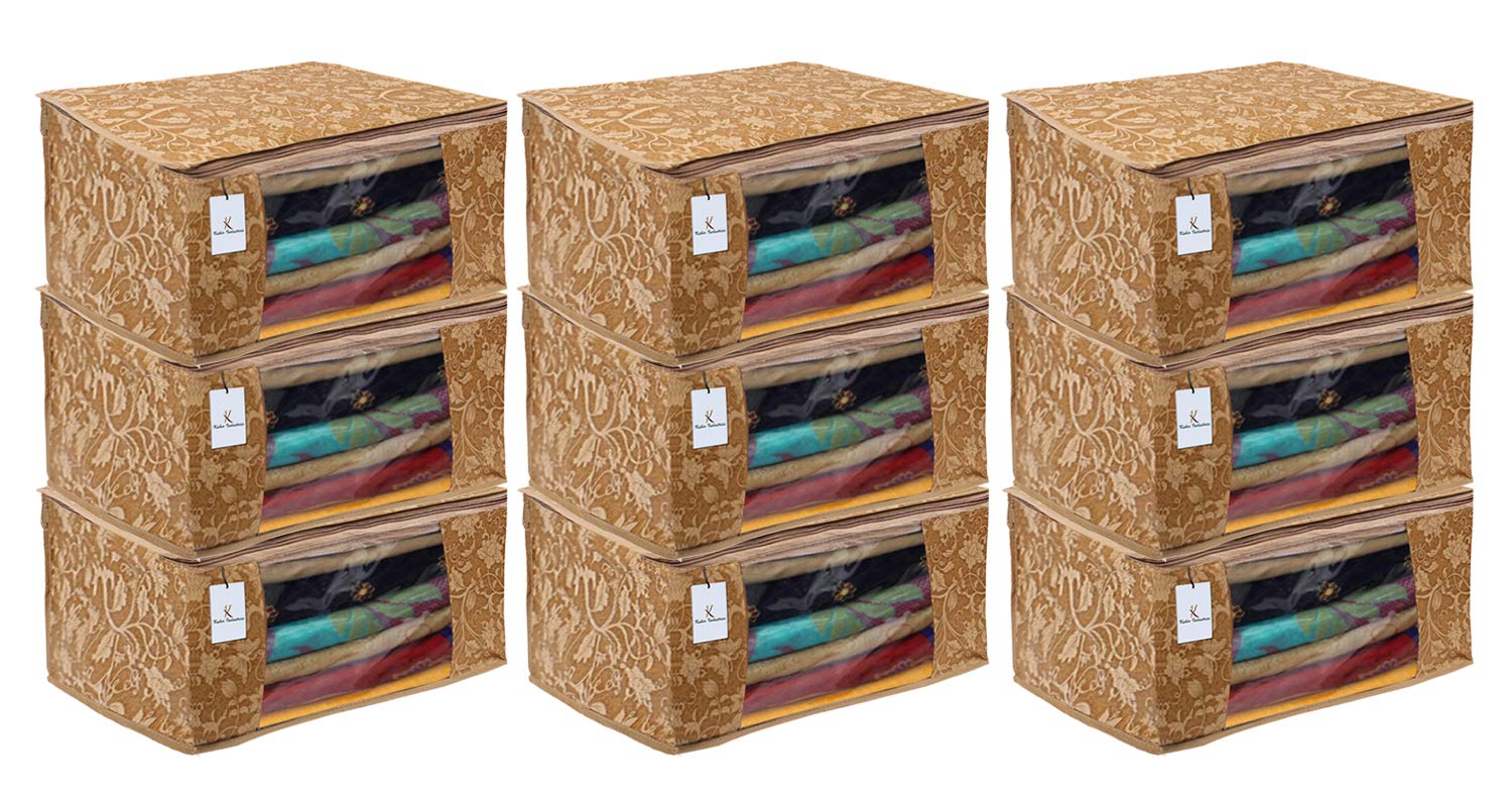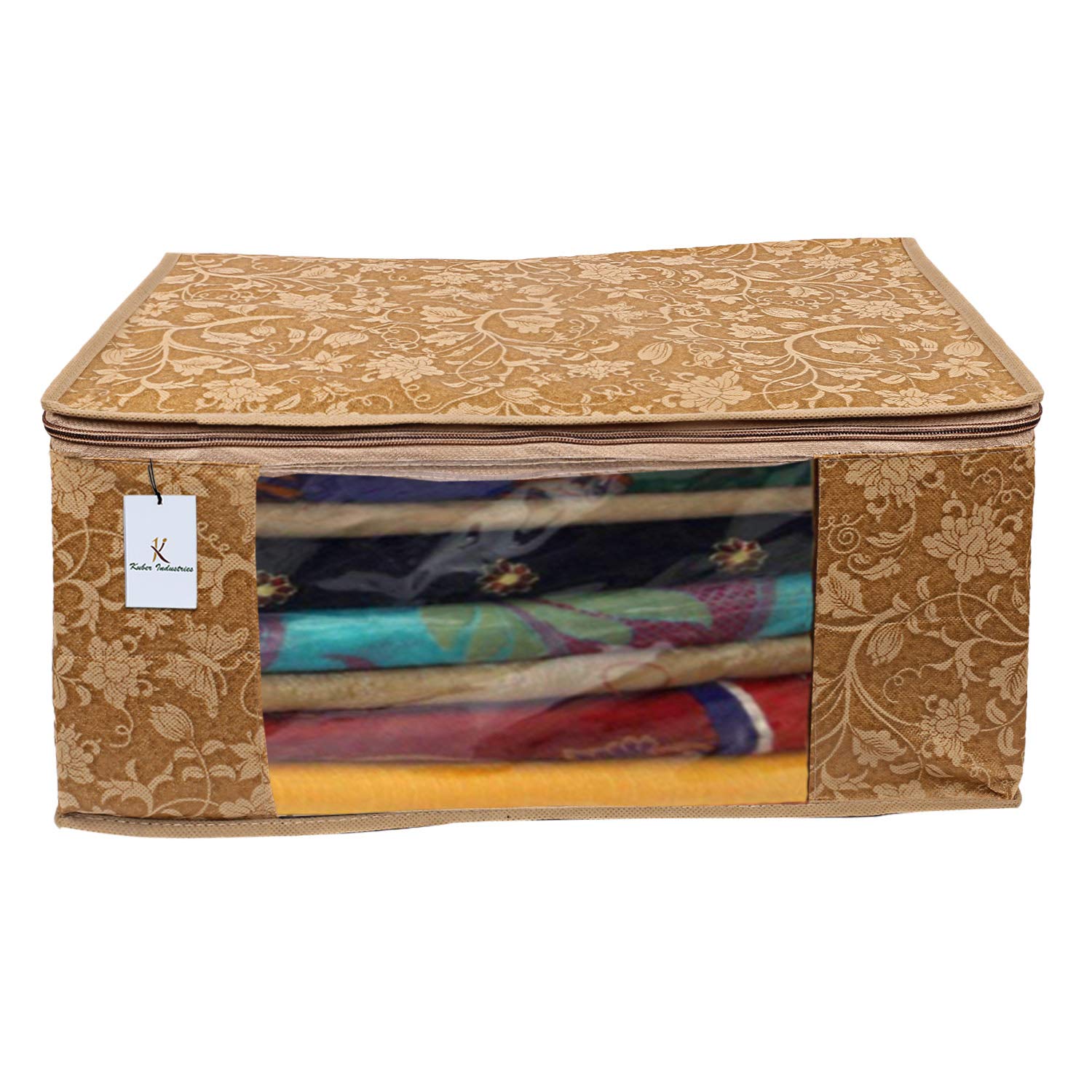 Made from durable, wear and tear-resistant non-woven metalic fabric. Attractive color and design. Can keep upto - 10 to 15 sarees. Lightweight and flexible saree covers. Carefully stitched to offer additional strength. Transparent see-through window for easy identification of contents. Durable zipper for easy opening and closing. Long life high quality saree cover bag for organizing your costly and favourite sarees. Package contents: 9 pieces saree covers. Color- beige, metalic flower design. Made from durable, wear and tear-resistant non-woven fabric. Can keep upto - 10 to 15 sarees. Lightweight and flexible saree covers. Carefully stitched to offer additional strength. Transparent see-through window for easy identification of contents. Durable zipper for easy opening and closing. Long life high quality saree cover bag for organizing your costly and favourite sarees.Kuber Industries is a customer-loved brand that brings you everything you need to make a house a home. Right from nifty storage solutions to smart kitchen essentials, our products are known for their premium and durable quality.