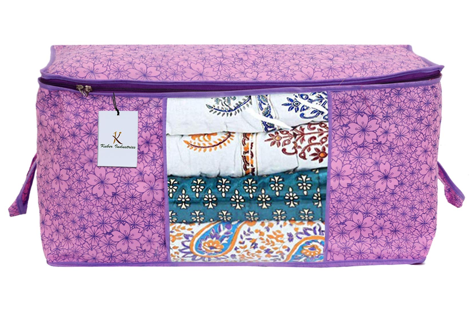 Kuber Industries's Underbed Bag keeps your quilts, blankets, pillows, bedsheets, towels, summer and winter clothing organized. It is perfect for storing those off-season things not needed. It easily goes inside wardrobe, in the bed storage section, shelves, and reduces clutter in wardrobes and closets.The bag can be folded back when not in use. It collapses flat for saving precious storage space.The Storage bag can be kept in your storage beds, closets, wardrobes, storage cabinets. It maximizes your storage space and is perfect for those not-so-frequently used items in your Households.