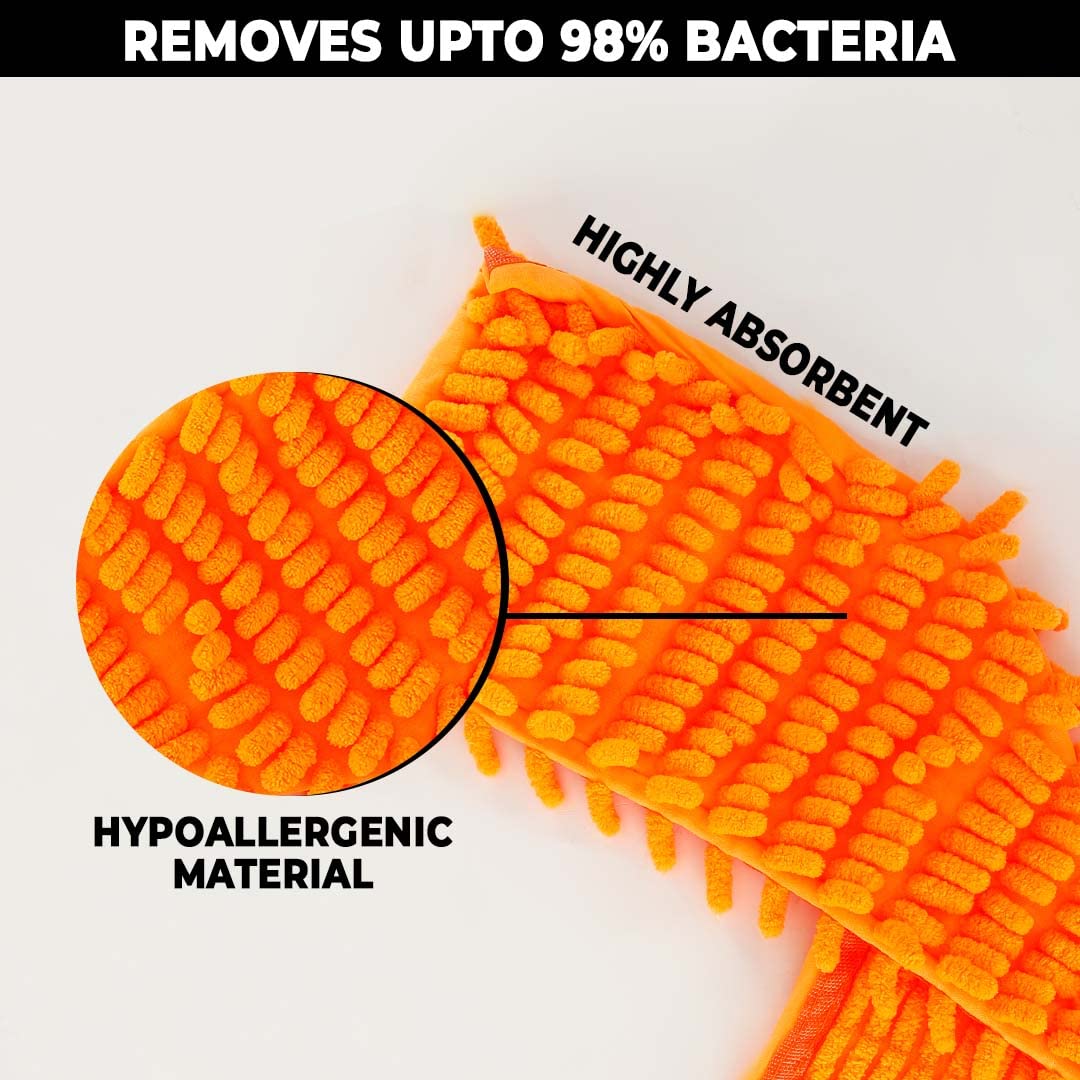 The hypoallergenic chenille microfiber material used in this wiper mop can help eliminate bacteria from your surfaces without requiring additional disinfectants. It is also suitable for both dry and wet cleaning, allowing for versatile usage across multiple surfaces.