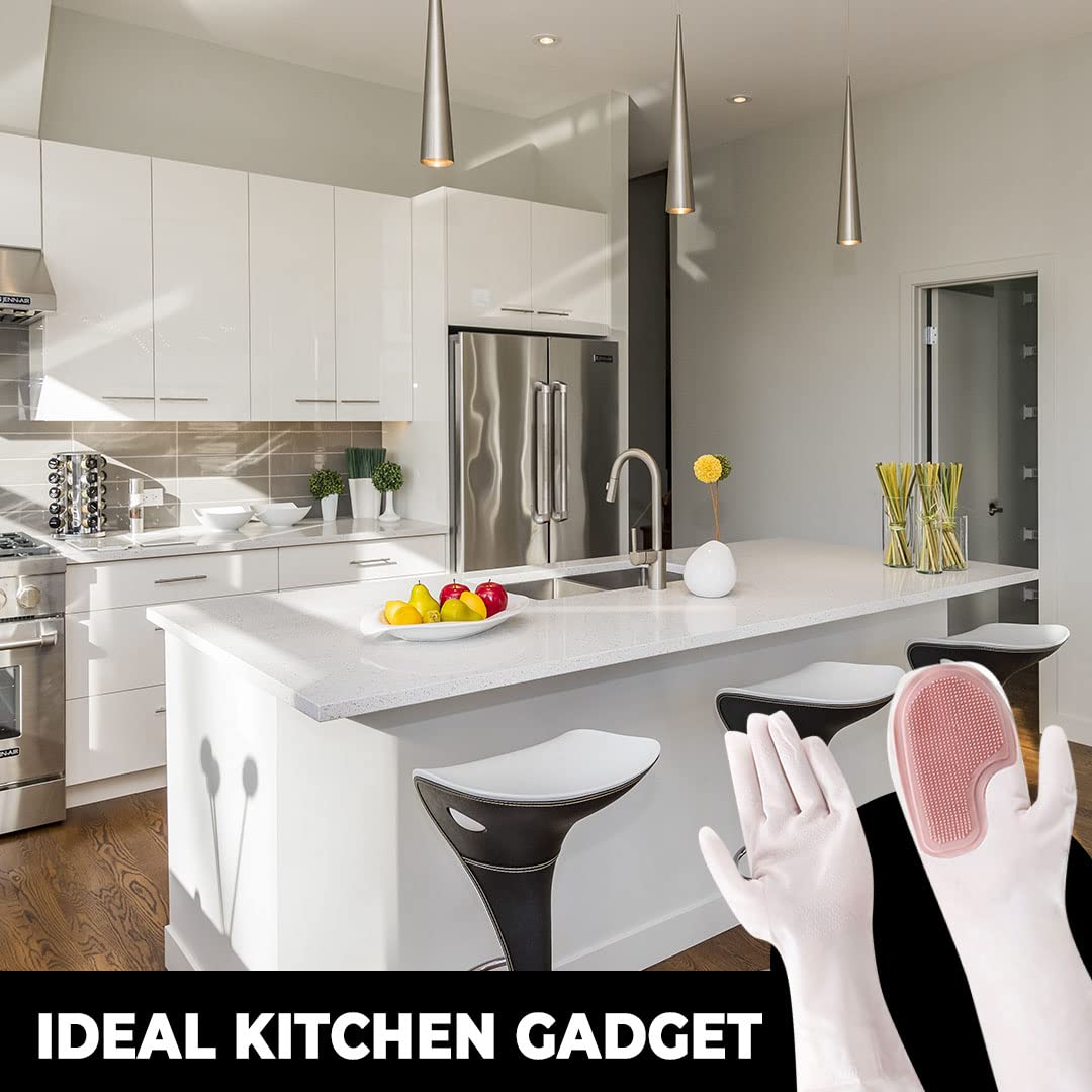 Scrubbing Magic GlovesScrubby, multi-purpose rubber gloves with scrubbers can be used for cleaning dishes, kitchen, toilet, bathroom, car wash, and dog and cat massage. | High Heat ResistantMagic silicone gloves with scrubbers Heat resistant temperatures up to 320 degrees F, 160 degrees C. Easy to use and take off the food. | Efficient CleaningSilicone cleaning gloves provide a better grip that makes them fit for washing dishes. |