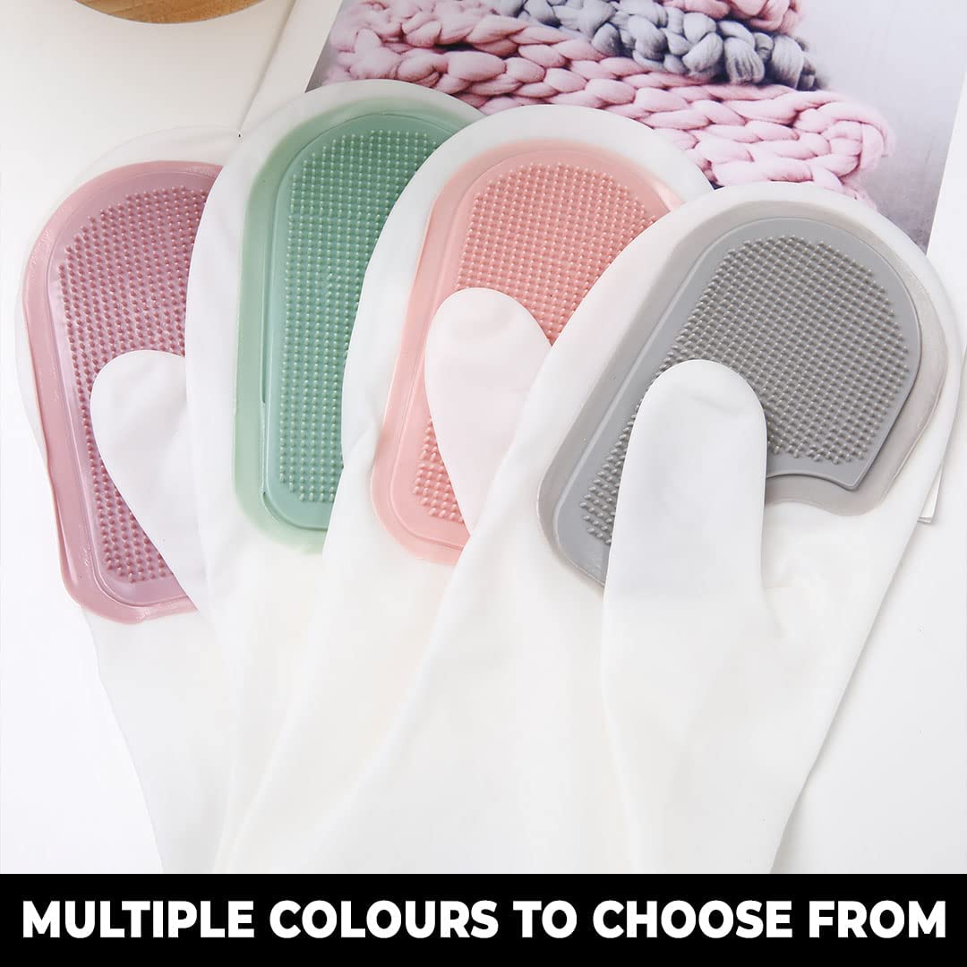 Scrubbing Magic GlovesScrubby, multi-purpose rubber gloves with scrubbers can be used for cleaning dishes, kitchen, toilet, bathroom, car wash, and dog and cat massage. | High Heat ResistantMagic silicone gloves with scrubbers Heat resistant temperatures up to 320 degrees F, 160 degrees C. Easy to use and take off the food. | Efficient CleaningSilicone cleaning gloves provide a better grip that makes them fit for washing dishes. |