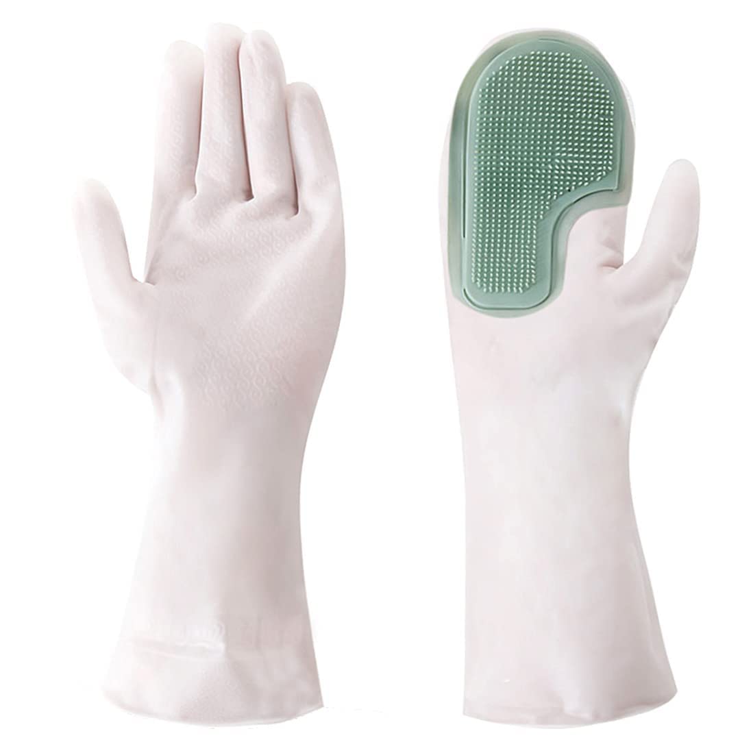 Scrubbing Magic GlovesScrubby, multi-purpose rubber gloves with scrubbers can be used for cleaning dishes, kitchen, toilet, bathroom, car wash, and dog and cat massage. | High Heat ResistantMagic silicone gloves with scrubbers Heat resistant temperatures up to 320 degrees F, 160 degrees C. Easy to use and take off the food. | Efficient CleaningSilicone cleaning gloves provide a better grip that makes them fit for washing dishes. |