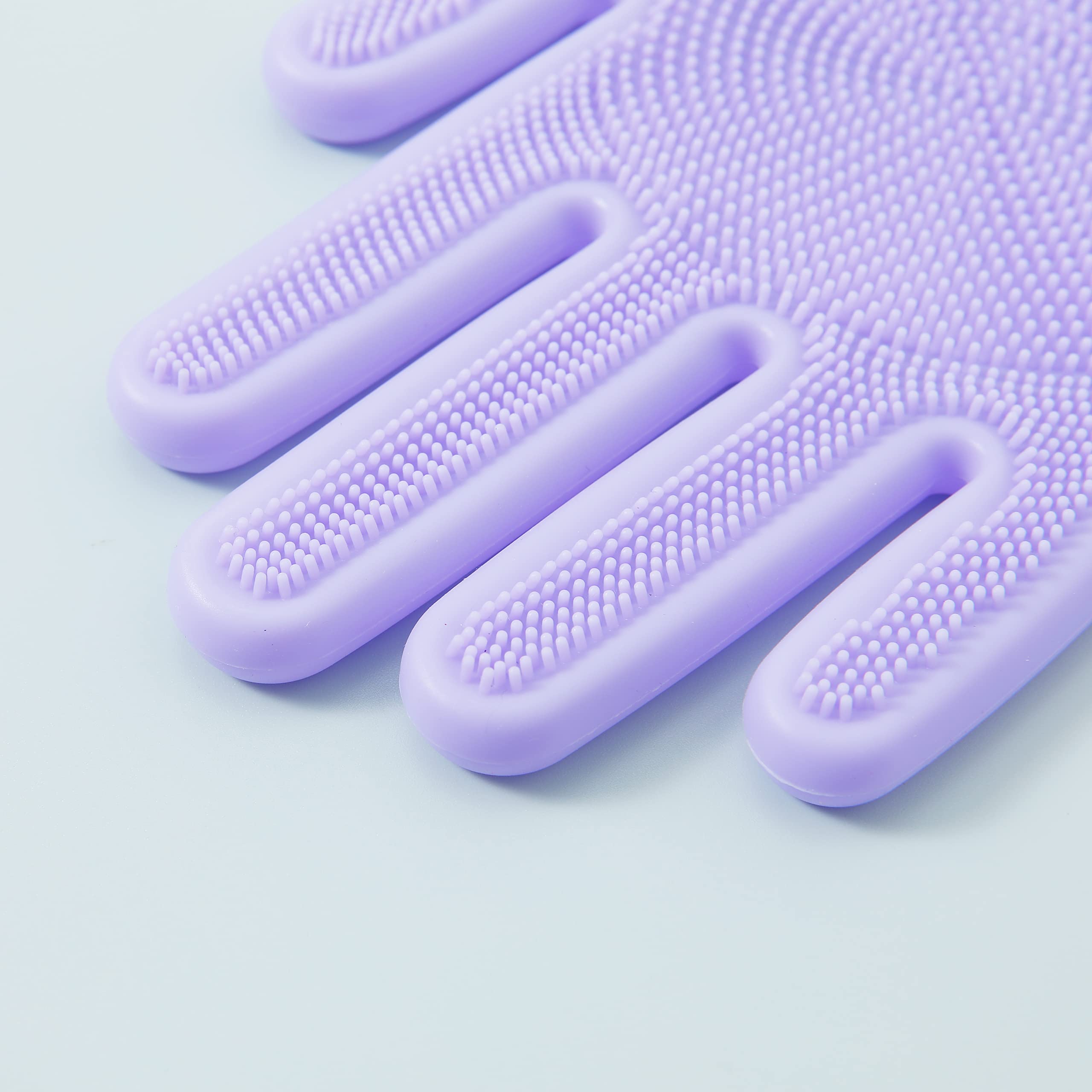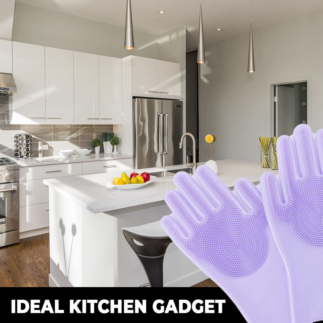 Scrubbing Magic GlovesScrubby, multi-purpose rubber gloves with scrubbers can be used for cleaning dishes, kitchen, toilet, bathroom, car wash, and dog and cat massage. | High Heat ResistantMagic silicone gloves with scrubbers Heat resistant temperatures up to 320 degrees F, 160 degrees C. Easy to use and take off the food. | Efficient CleaningSilicone cleaning gloves provide a better grip that makes them fit for washing dishes. |