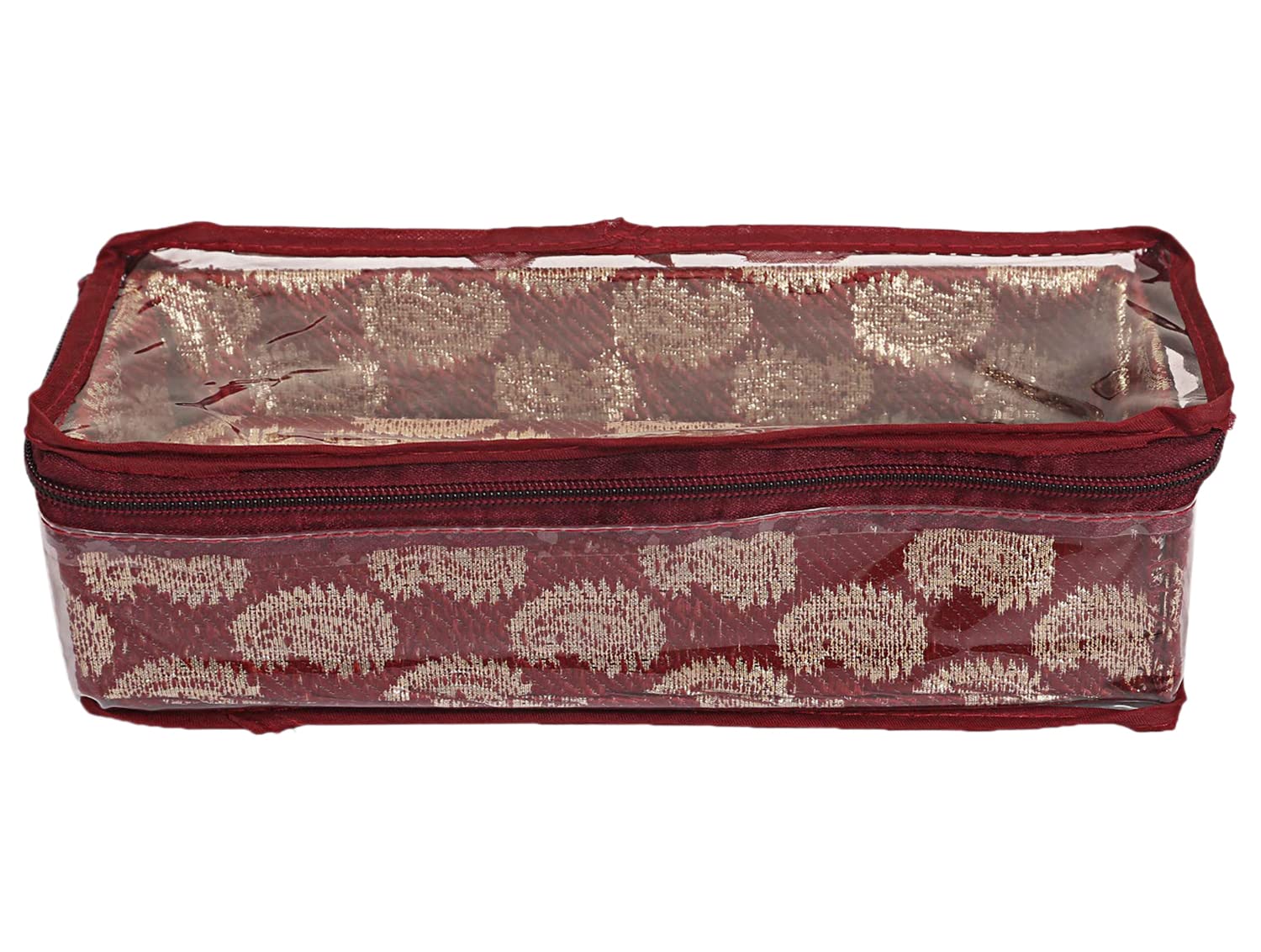 Kuber Industries storage box, organizer is ideal for storing bangles, watches, Bracelets, jewellery, small accessories etc. This is used to organize your bangles systematically and protect them from breakage so, keep delicate your bangles safely this is enough to keep your bangles and all needs. This bangle box is made of good quality laminated wooden and paperboard material so, this is very durable, long-lasting and very useful. There are 1 rods inside to hold bangles stiffly at a place and avoid unnecessary tangling and breaking. It gives them a strong and stable hold to keep the brittle and beautiful bangles safe. It can accommodate many bangles and helps you in organizing them safely. The box is strong and thus helps in holding the bangles to avoid any breaking and damage. The strong frame fits at any comfortable place and looks indeed beautiful due to its decoration on a strong frame. The three rods fitted into the box completely hold the bangles firmly and strongly. The transparency of the pouch makes it even more revealing and attractive. The see-through pouch helps you see and know what is there inside and what is missing. If anything goes missing or bangles are broken we can immediately take the required steps of either replacing or getting new ones. It always reminds us of the availability and unavailability. With elegant appearance and considerate design, this watch case is great for personal use, shop display and home decoration. Will be an ideal gift for birthday, valentine's day, wedding, Christmas and new yearDetailed Specifications:
