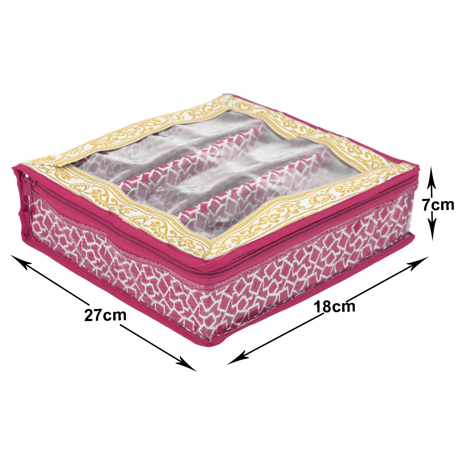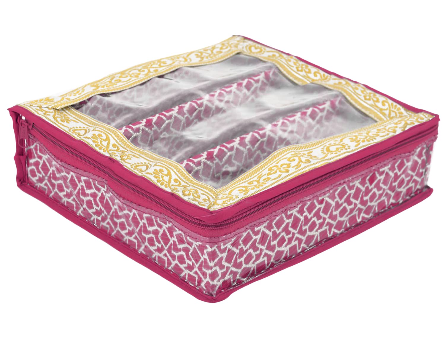 Kuber Industries storage box, organizer is ideal for storing bangles, watches, Bracelets, jewellery, small accessories etc. This is used to organize your bangles systematically and protect them from breakage so, keep delicate your bangles safely this is enough to keep your bangles and all needs. This bangle box is made of good quality laminated wooden and paperboard material so, this is very durable, long-lasting and very useful. There are 1 rods inside to hold bangles stiffly at a place and avoid unnecessary tangling and breaking. It gives them a strong and stable hold to keep the brittle and beautiful bangles safe. It can accommodate many bangles and helps you in organizing them safely. The box is strong and thus helps in holding the bangles to avoid any breaking and damage. The strong frame fits at any comfortable place and looks indeed beautiful due to its decoration on a strong frame. The three rods fitted into the box completely hold the bangles firmly and strongly. The transparency of the pouch makes it even more revealing and attractive. The see-through pouch helps you see and know what is there inside and what is missing. If anything goes missing or bangles are broken we can immediately take the required steps of either replacing or getting new ones. It always reminds us of the availability and unavailability. With elegant appearance and considerate design, this watch case is great for personal use, shop display and home decoration. Will be an ideal gift for birthday, valentine's day, wedding, Christmas and new yearDetailed Specifications: