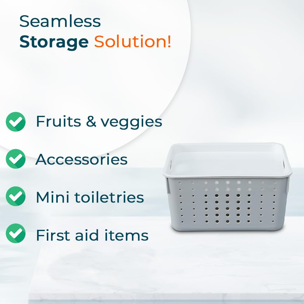 Homestic Multipurpose Storage Basket with Lid offers a versatile and efficient solution for organizing various items. With its large capacity, this storage basket can accommodate a wide range of belongings, making it suitable for different storage needs. Its easy storage feature allows you to conveniently stack multiple baskets, maximizing space utilization. The basket's lid ensures dustproof and moisture-proof protection, keeping your items clean and well-preserved.Detailed Specifications: