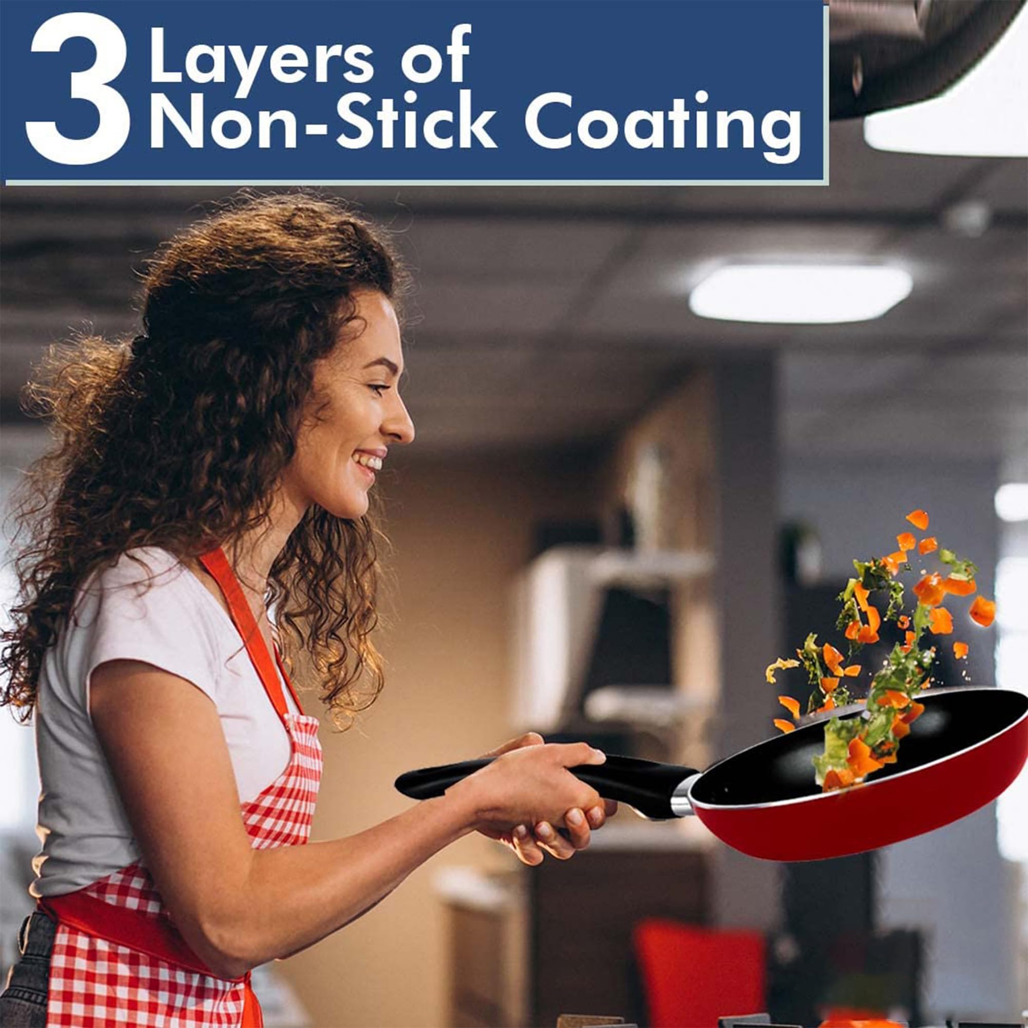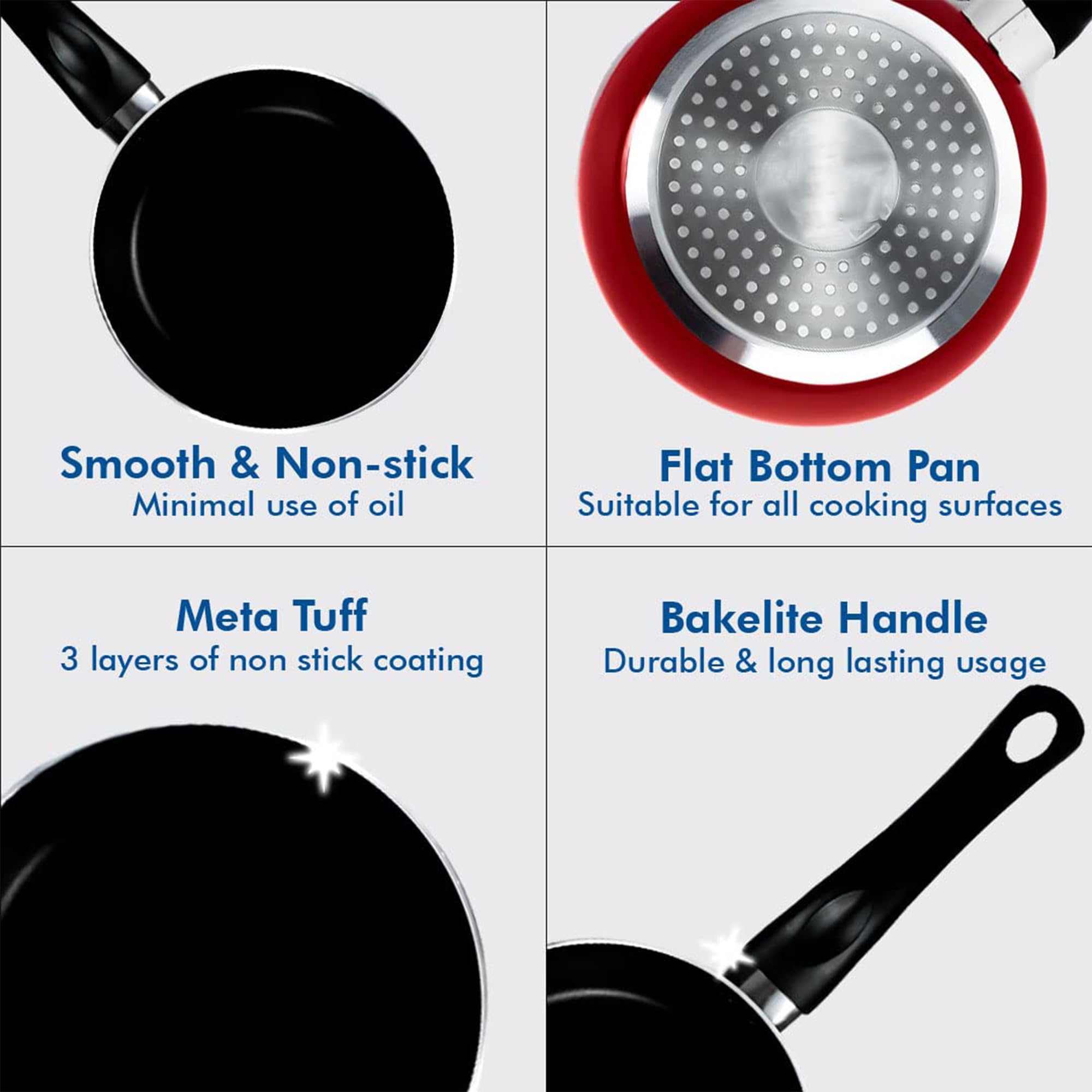 This aluminum frying non-stick pan, designed with a sturdy handle, makes sure you can easily cook omelettes, fish, or prepare tadka without any inconvenience. It can be used on induction cooktops while it is made from aluminum which distributes heat evenly across the surface. Our deep frying pan is easy to clean, so you can spend less time scrubbing after cooking. Don’t worry about it losing its non-stick feature because it is built for long-term use. This is a must-have addition to any kitchen because it works for multiple recipes.Detailed Specifications: