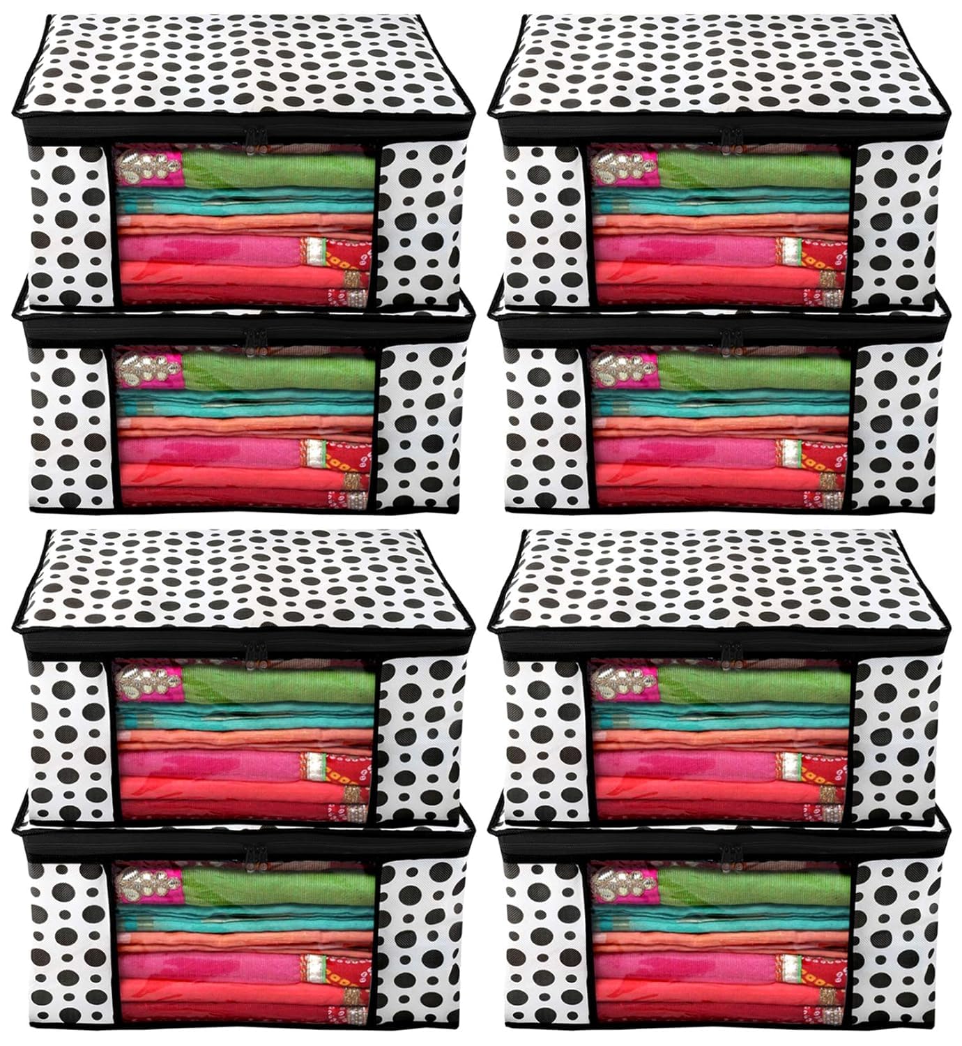 Made from durable, wear and tear-resistant non-woven fabric. Attractive colour and design. Can keep upto - 10 to 15 sarees. Lightweight and flexible saree covers. Carefully stitched to offer additional strength. Transparent see-through window for easy identification of contents. Durable zipper for easy opening and closing. Long life saree cover bag for organizing your costly and favourite sarees. Package contents: 8 pieces saree covers. Colour- Black & White, Flower design . Made from durable, wear and tear-resistant non-woven fabric. Can keep upto - 10 to 15 sarees. Lightweight and flexible saree covers. Carefully stitched to offer additional strength. Transparent see-through window for easy identification of contents. Durable zipper for easy opening and closing. Long life saree cover bag for organizing your costly and favourite sarees.