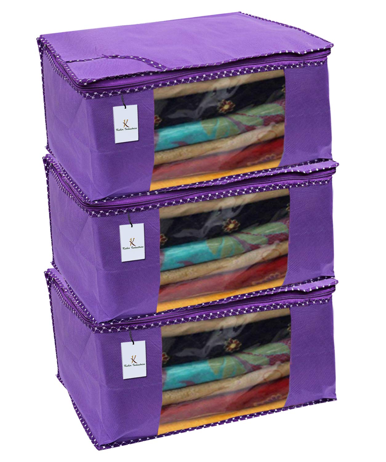 Homestic saree covers with zip is a great option for organizing and protecting your sarees. The use of non-woven, 90 GSM virgin fabric makes it durable and water-repellent, while the transparent top allows for easy visibility of what is inside the bag. The addition of premium quality zippers and quilted sides to provide cushioning also make this product seem practical and well-designed. It is also great for traveling, as you can pack your sarees and store them safely while on the go. It will help you to keep your sarees wrinkle free and well-protected for long-term storage, and also to keep them easy to access and identify, making it a perfect solution for both storing and protecting your sarees.