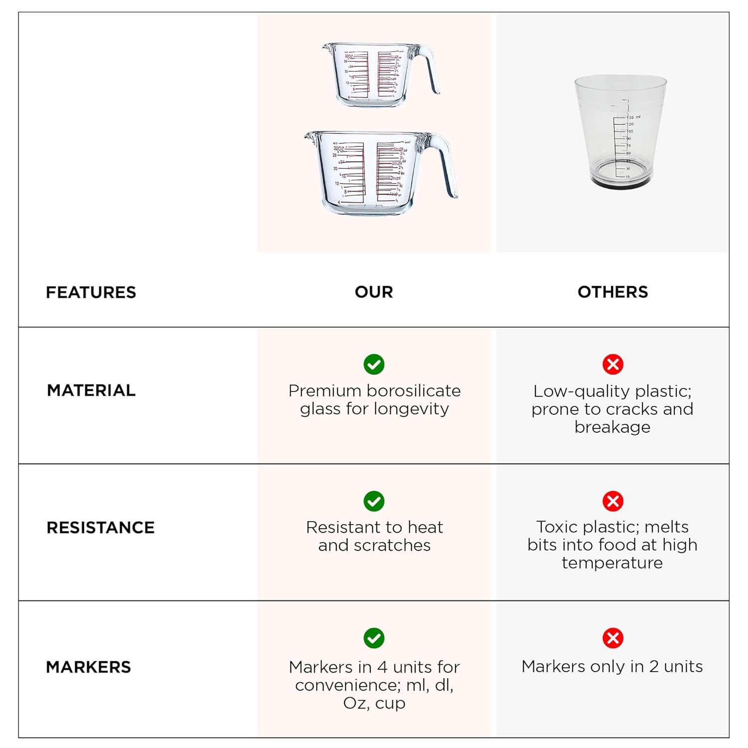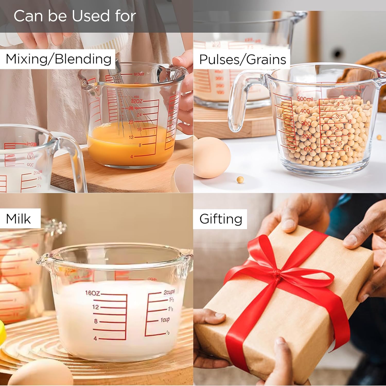 The Kuber Industries Borosilicate Glass Measuring Cups are a must-have kitchen accessory for all baking enthusiasts. The set includes two measuring cups - one 500ml and one 1000ml, both made from high-quality borosilicate glass. The eagle mouth shape cups feature a thickened and smooth rim, making it easy to pour liquids without any spills. The sturdy handle ensures a secure grip, while the smooth edges provide a comfortable user experience. These measuring cups are heat resistant, scratch resistant, and microwave & dishwasher safe, making them perfect for all your baking needs. The wide mouth design allows for easy cleaning and precise measurements. The large capacity of the cups makes them ideal for various cooking and baking tasks, whether you need to measure water, milk, or other ingredients. Kuber Industries 's Borosilicate Glass Measuring Cups are designed to provide value for money, offering a useful and high-quality solution for your kitchen needs. Customers appreciate the accuracy and convenience of these cups, as well as their eco-friendly and stylish design. The variety in sizes and the multifunctional nature of the cups make them a handy tool to have in the kitchen. Whether you're a professional chef or a home cook, these measuring cups are sure to meet your expectations. Say goodbye to poor quality and inaccurate measurements with Kuber Industries 's reliable and practical baking tools. Invest in the Kuber Industries Borosilicate Glass Measuring Cups today and elevate your baking experience to a whole new level.Detailed Specifications: