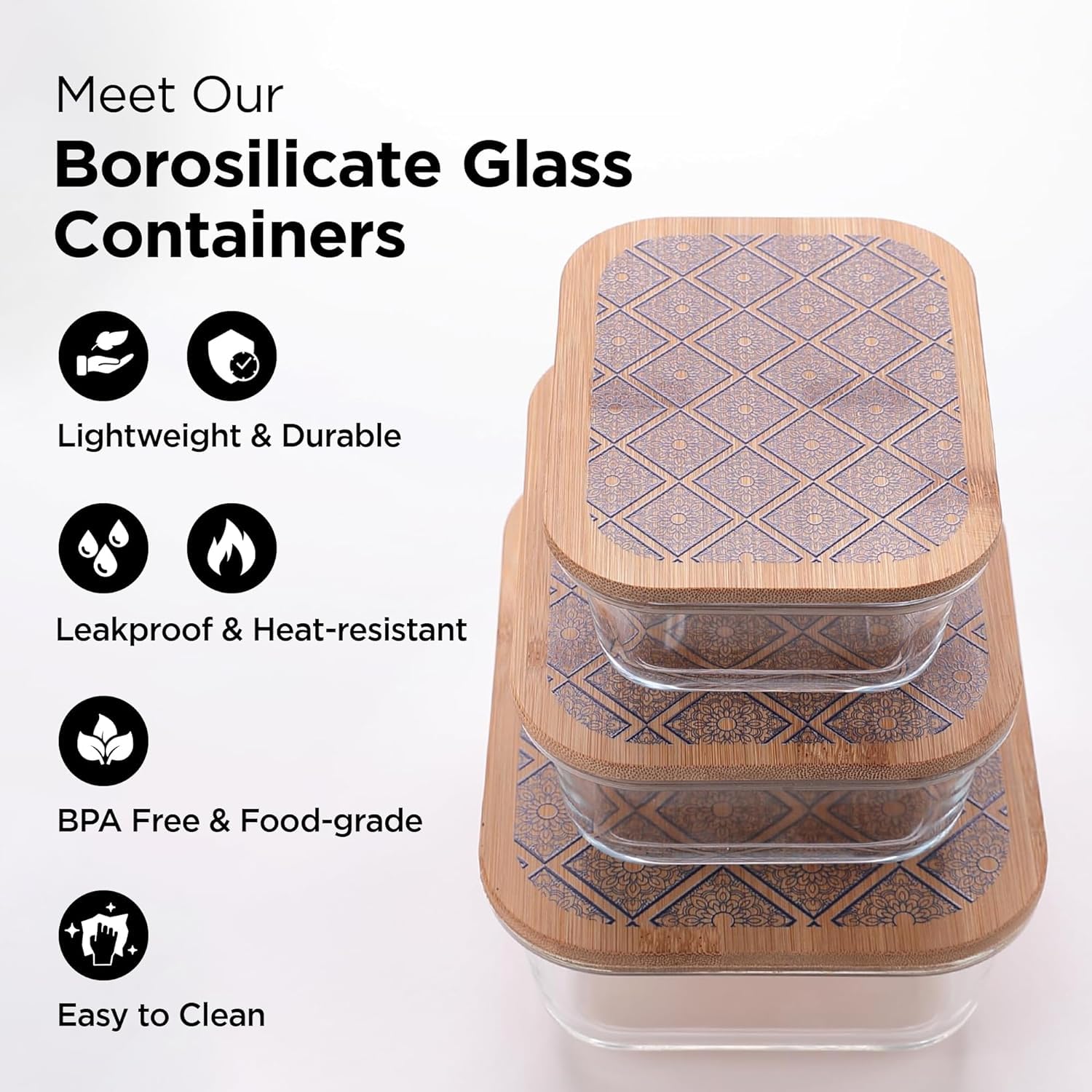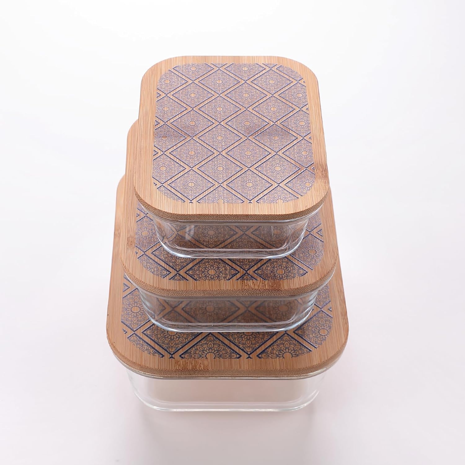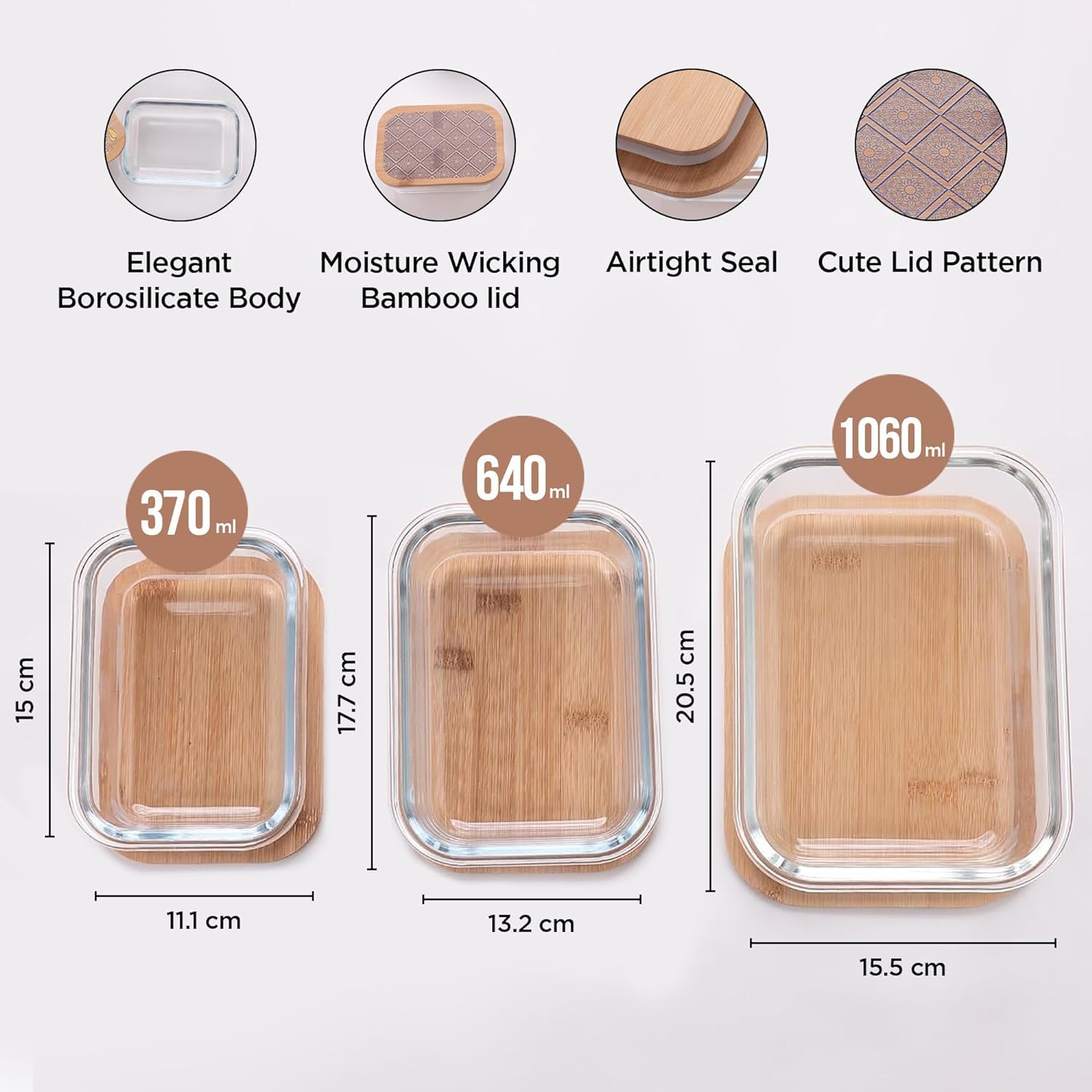 Homestic offers a premium quality set of Borosilicate Glass Kitchen containers with bamboo lids, perfect for organizing your kitchen essentials. This pack of 3 containers comes in 370ml, 640ml, and 1060ml capacities, ideal for storing grains, pulses, spices, snacks, tea, coffee, sugar, salt, nuts, and more. The airtight bamboo lids with food-grade silicone rings ensure your ingredients stay fresh for longer periods. The wide-mouth design allows for easy access to your items, while the rectangular shape optimizes storage space in your kitchen cabinets or fridge. The crystal-clear clarity of the glass jars makes it easy to identify the contents at a glance. The Borosilicate glass body is lightweight, odor and stain-resistant, BPA-free, leakproof, spill-proof, and temperature-resistant, making it a versatile choice for everyday use. These containers are also dishwasher, freezer, and microwave safe, adding to their convenience. The transparent design with a Blue Pottery print adds an aesthetic appeal to your kitchen decor. This set is not only functional but also visually pleasing, making it a perfect gift for mothers, families, or wives. Customers appreciate the high quality and durability of these containers, ensuring they get value for their money. The Homestic Borosilicate Glass Kitchen containers set with bamboo lids are designed to overcome common concerns such as lid issues, seal/vacuum issues, and quality/craftsmanship concerns. Say goodbye to low-quality storage solutions and elevate your kitchen storage game with Homestic .Detailed Specifications: