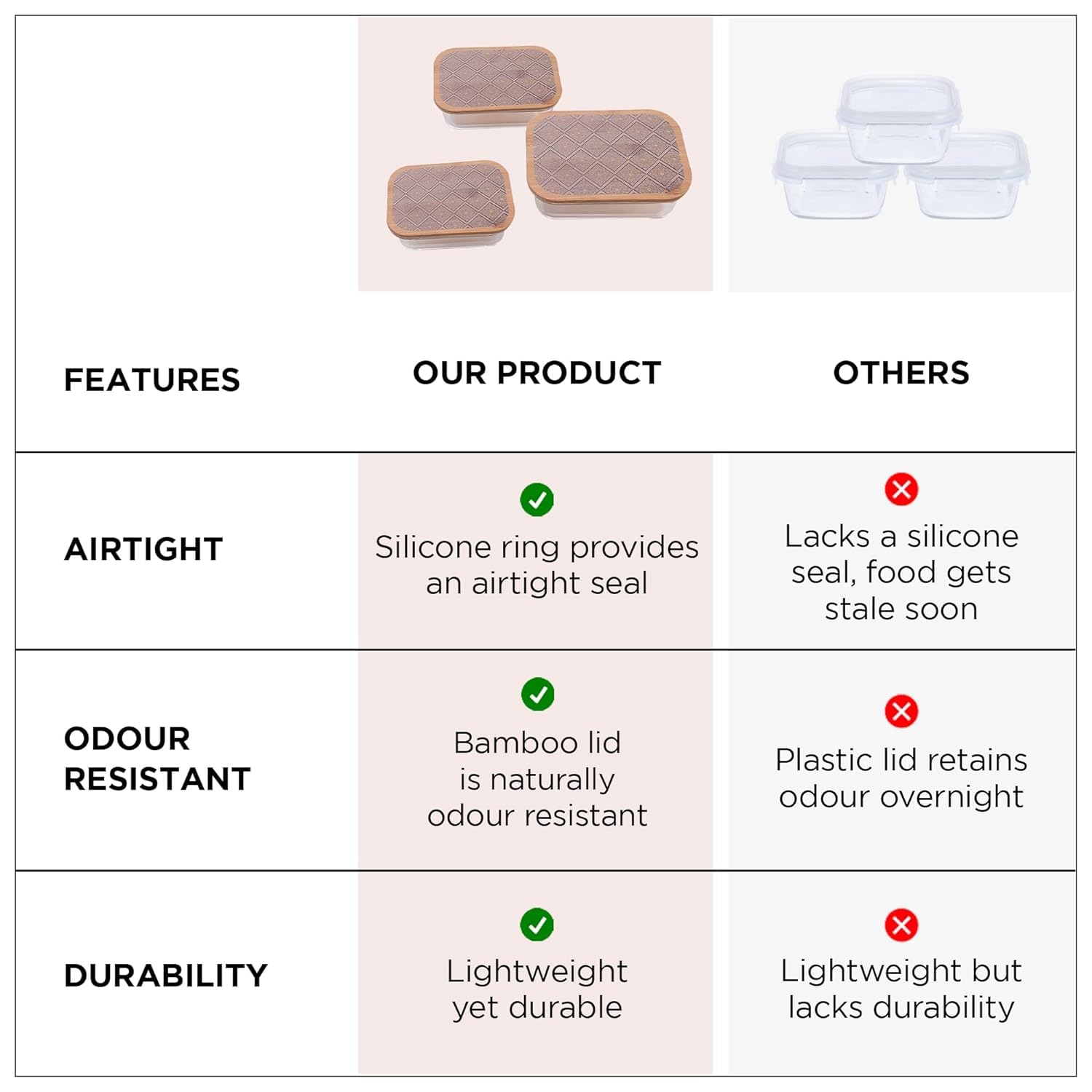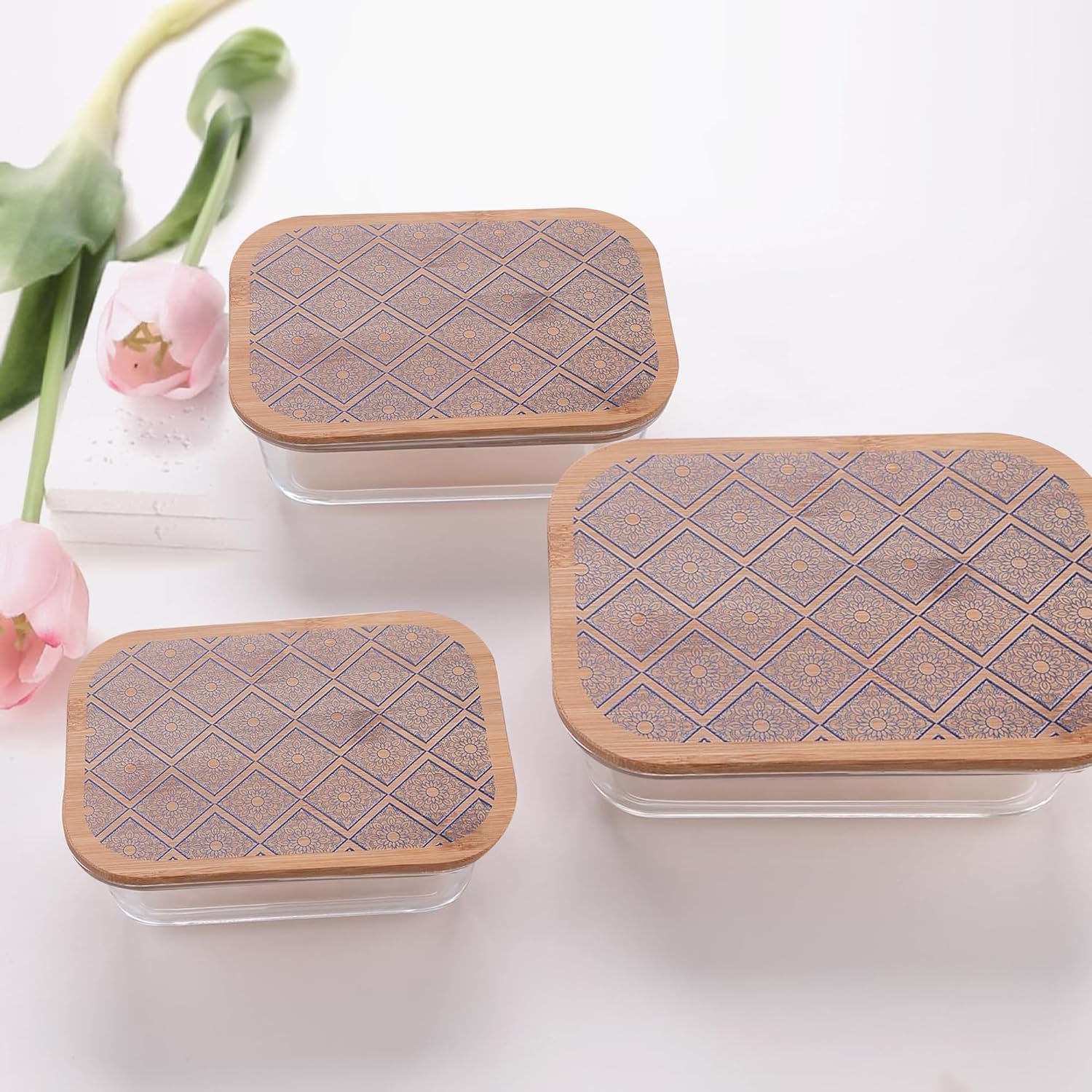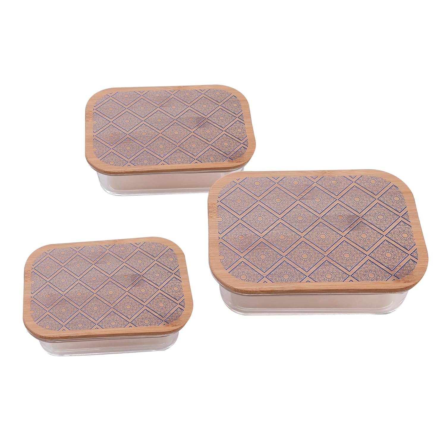 Homestic offers a premium quality set of Borosilicate Glass Kitchen containers with bamboo lids, perfect for organizing your kitchen essentials. This pack of 3 containers comes in 370ml, 640ml, and 1060ml capacities, ideal for storing grains, pulses, spices, snacks, tea, coffee, sugar, salt, nuts, and more. The airtight bamboo lids with food-grade silicone rings ensure your ingredients stay fresh for longer periods. The wide-mouth design allows for easy access to your items, while the rectangular shape optimizes storage space in your kitchen cabinets or fridge. The crystal-clear clarity of the glass jars makes it easy to identify the contents at a glance. The Borosilicate glass body is lightweight, odor and stain-resistant, BPA-free, leakproof, spill-proof, and temperature-resistant, making it a versatile choice for everyday use. These containers are also dishwasher, freezer, and microwave safe, adding to their convenience. The transparent design with a Blue Pottery print adds an aesthetic appeal to your kitchen decor. This set is not only functional but also visually pleasing, making it a perfect gift for mothers, families, or wives. Customers appreciate the high quality and durability of these containers, ensuring they get value for their money. The Homestic Borosilicate Glass Kitchen containers set with bamboo lids are designed to overcome common concerns such as lid issues, seal/vacuum issues, and quality/craftsmanship concerns. Say goodbye to low-quality storage solutions and elevate your kitchen storage game with Homestic .Detailed Specifications:
