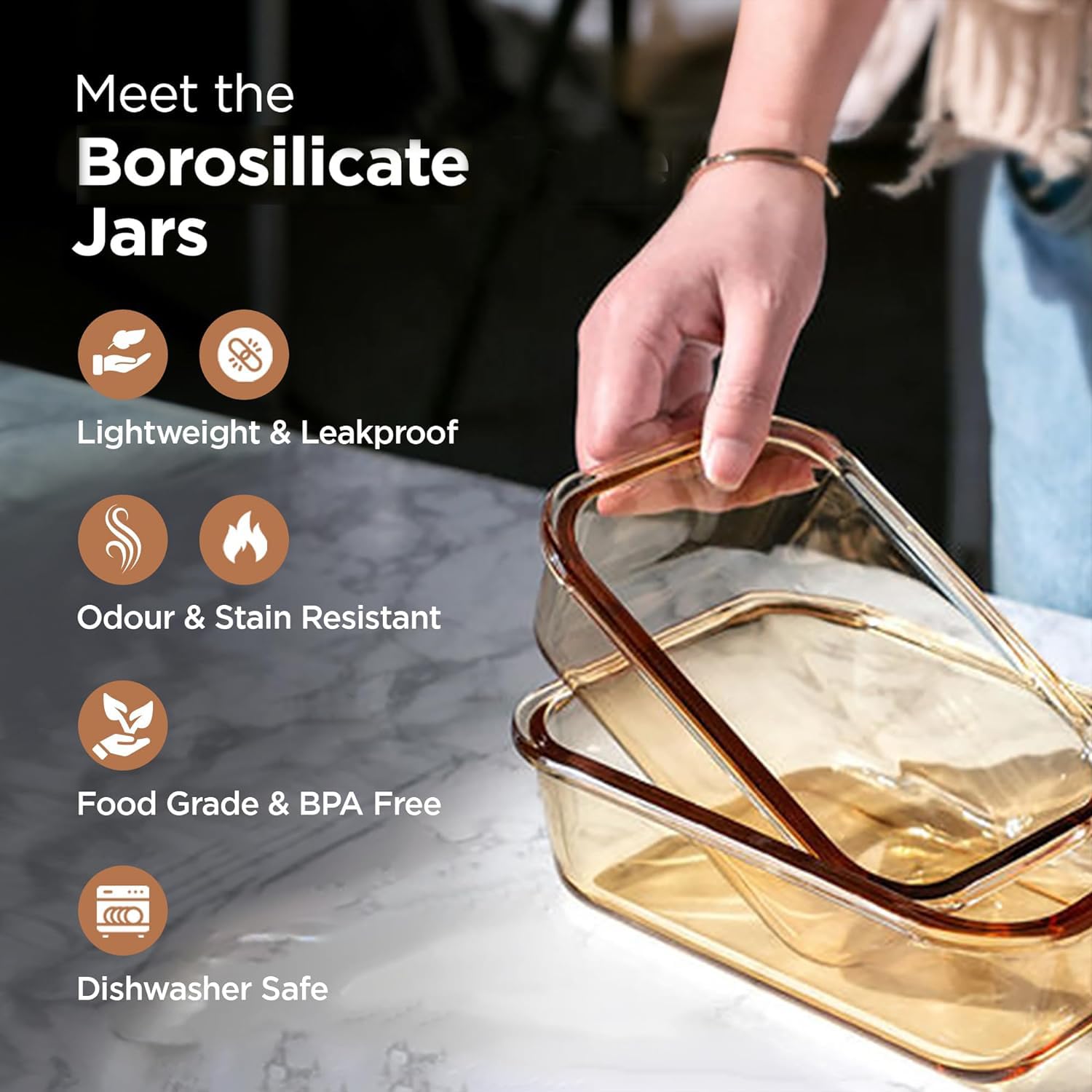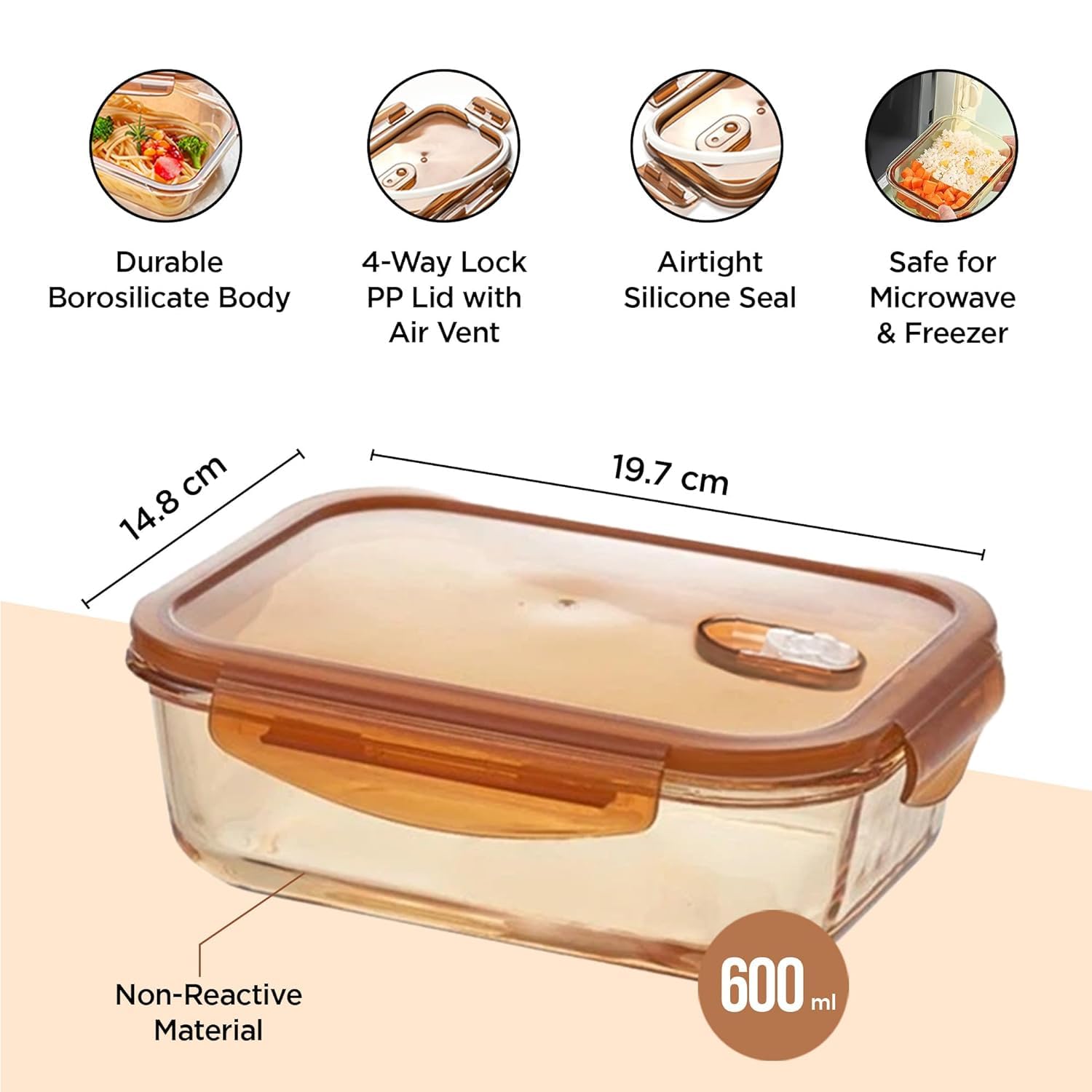 Introducing Kuber Industries Kitchen Containers Set, a versatile solution for all your kitchen storage needs. Made with premium quality Borosilicate glass, these containers are durable, odor, and stain-resistant, ensuring your food stays fresh for longer periods. The set includes 3 containers, each with a large 600ml capacity, perfect for storing grains, pulses, snacks, nuts, and more. The airtight rectangular fridge storage boxes come with an airvent and side-locking PP lid with a food-grade silicone ring, ensuring a leakproof and spillproof seal. The wide mouth and rectangular shape make it easy to access your stored items while the crystal-clear clarity adds an aesthetic appeal to your kitchen. Kuber Industries Kitchen Containers Set is microwave safe, dishwasher safe, and freezer safe, making it convenient for everyday use for the whole family. The BPA-free material makes it a sustainable choice for storing a variety of items like flour, pasta, herbs, candy, chips, cookies, jam, beans, vegetables, fruits, and more. Customers love the high quality and aesthetic appeal of Kuber Industries Kitchen Containers Set. With a focus on value for money and quality, these containers are a must-have for every kitchen. The pack of 3 containers in amber color adds a touch of elegance to your kitchen decor. Kuber Industries Kitchen Containers Set has addressed customer concerns like lid issues, seal/vacuum problems, and quality/craftsmanship worries by providing a durable and high-quality solution. The airtight seal ensures your food stays fresh longer, giving you peace of mind. Don't compromise on the quality of your kitchen storage containers. Choose Kuber Industries Kitchen Containers Set for a durable, aesthetically pleasing, and value-for-money storage solution. Perfect for gifting or everyday use, these containers are a must-have for every kitchen.Detailed Specifications: