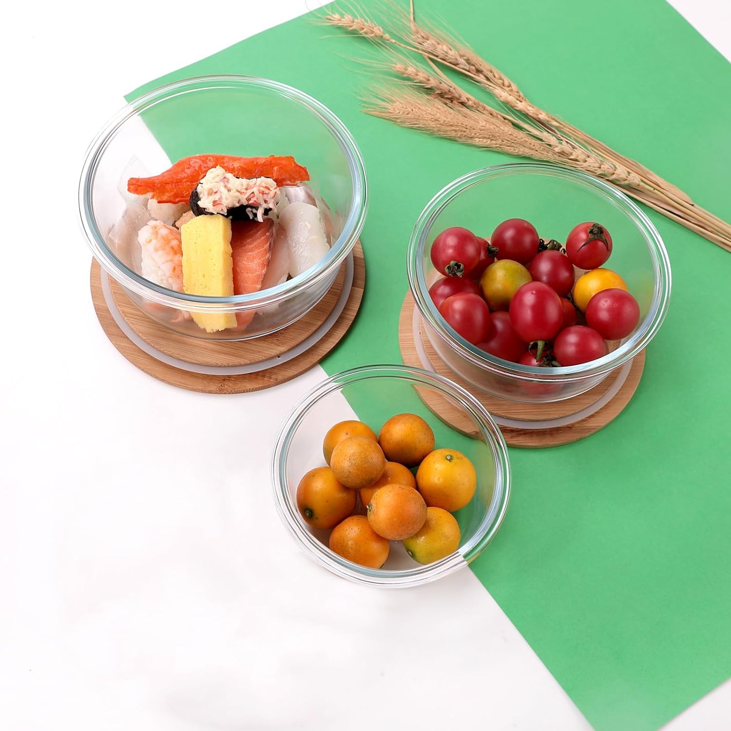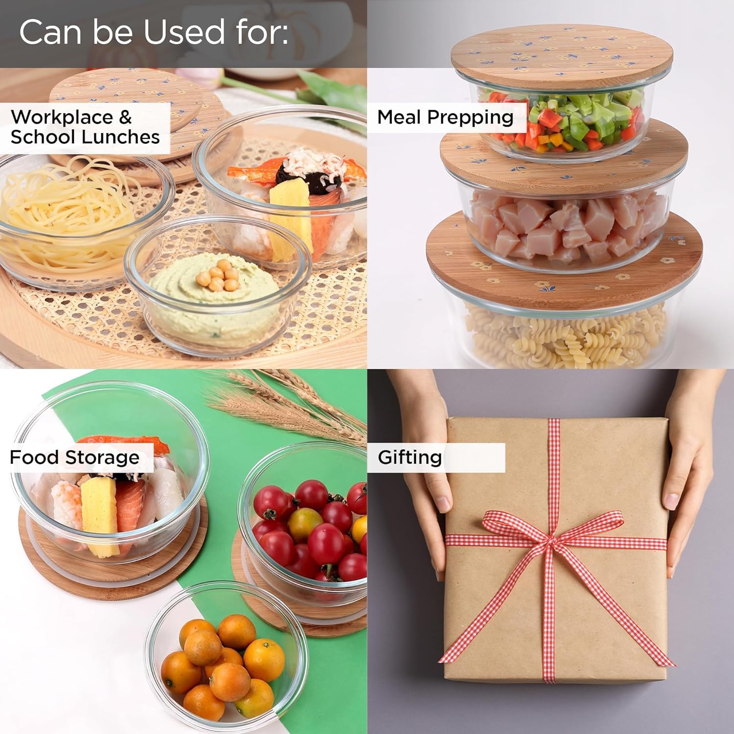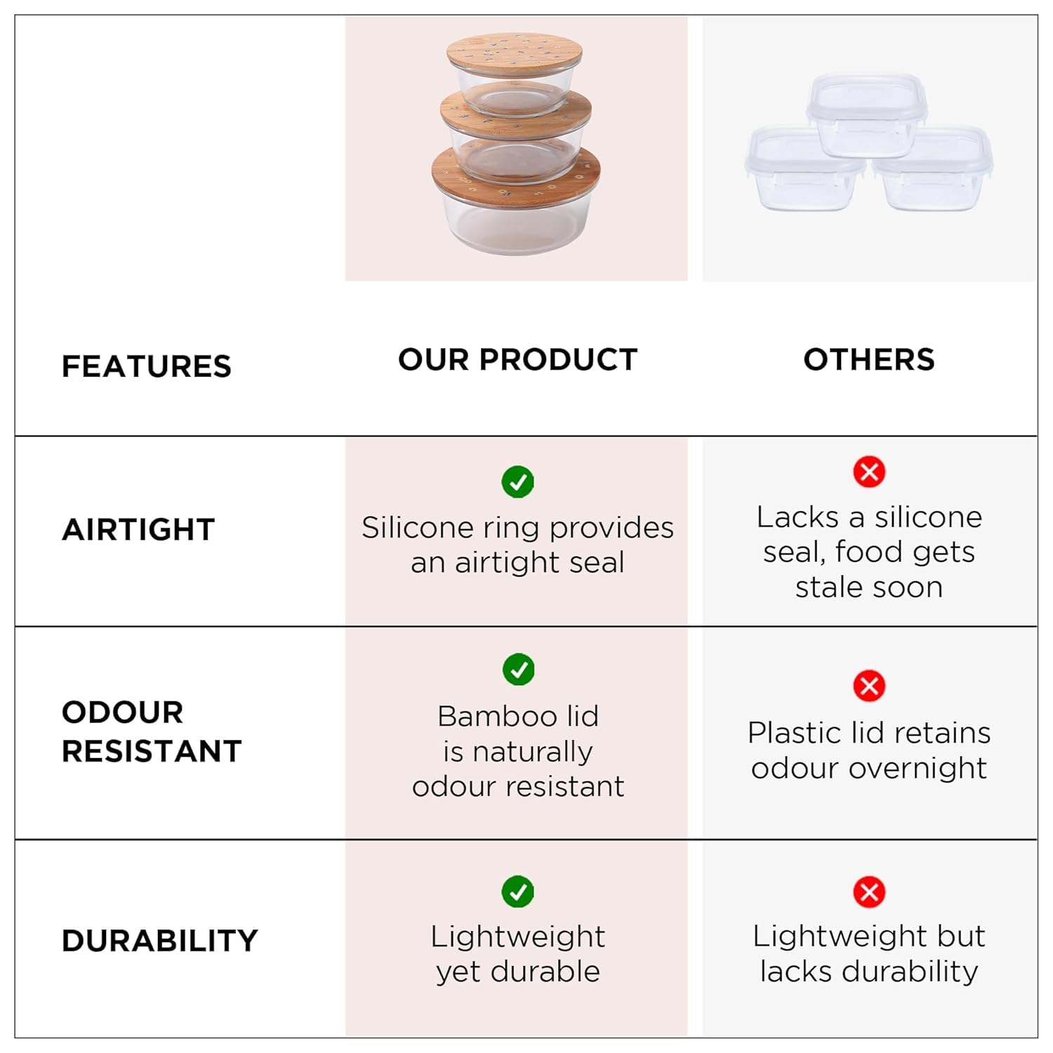 Introducing Homestic 's Pack of 3 Borosilicate Glass Kitchen airtight containers set with bamboo lid. These airtight round fridge storage boxes are perfect for storing grains, pulses, spices, snacks, tea, coffee, sugar, salt, nuts, and more. The transparent glass jars with Happy Dance print are not only functional but also aesthetically pleasing. These premium quality containers feature a borosilicate body with an airtight bamboo lid that has a food-grade silicone ring for a secure seal. The wide mouth and large capacity of 390ml, 620ml, and 960ml make them versatile for storing a variety of items like dry fruits, flour, fruits, vegetables, and more. Homestic 's kitchen airtight containers set are lightweight, odor and stain resistant, BPA-free, leakproof, spillproof, and temperature resistant. They offer crystal clear clarity, making it easy to identify the contents inside. Additionally, they are easy to clean, dishwasher safe, freezer safe, and microwave safe, providing convenience for everyday use. Designed for mothers, families, and wives, these containers are perfect for gifting or use in the kitchen, cabinets, or lunch boxes. Customers love the high quality, durability, and aesthetically pleasing design of these containers. They are motivated by the recommendation, aesthetic appeal, value for money, and quality that Homestic offers. Homestic 's Pack of 3 Borosilicate Glass Kitchen containers set with bamboo lid not only addresses lid issues, leakage and spillage issues, and quality and craftsmanship concerns that customers may have but exceeds expectations with its superior functionality and design. Experience the convenience and elegance of Homestic 's kitchen containers for all your storage needs. Get yours today!Detailed Specifications: