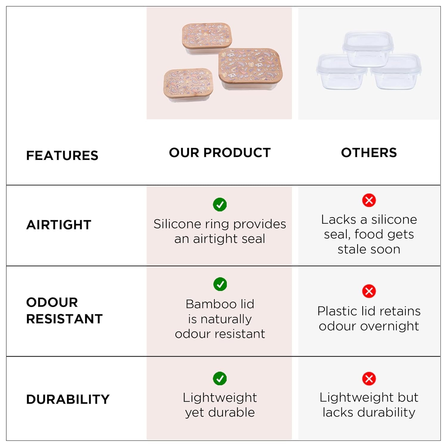 Introducing Kuber Industries borosilicate kitchen airtight containers set with lid, the perfect multipurpose solution for all your kitchen organization needs. Made from premium quality borosilicate glass, these containers are not only durable but also aesthetically pleasing, making them a great addition to any kitchen. The airtight bamboo lids with food-grade silicone rings ensure that your food stays fresh for longer periods. With a wide mouth and large capacity, these containers are perfect for storing a variety of items such as grains, pulses, spices, snacks, tea, coffee, sugar, salt, nuts, and more. Kuber Industries kitchen glass airtight containers set with lid come in a pack of 3, with capacities of 370ml, 640ml, and 1060ml, making them ideal for storing different quantities of food items. The rectangular shape and transparent design make it easy to see what's inside, while the lightweight construction and leak-proof seal ensure convenience and peace of mind. Not only are these containers microwave safe, but they are also freezer and dishwasher safe, making them easy to clean and maintain. The sustainable material used is BPA-free and odor/stain resistant, further enhancing the quality of these containers. Whether you're a busy mother looking to organize your family's kitchen or a wife searching for high-quality storage solutions, Kuber Industries kitchen containers are designed to meet your needs. From everyday use to gifting purposes, these containers offer value for money and exceptional quality that customers love. Kuber Industries understands the importance of customer satisfaction and has addressed common concerns such as lid issues, seal/vacuum problems, and quality/craftsmanship worries. By providing a product that is durable, functional, and visually appealing, Kuber Industries aims to exceed customer expectations and deliver a truly exceptional kitchen storage solution.Detailed Specifications: