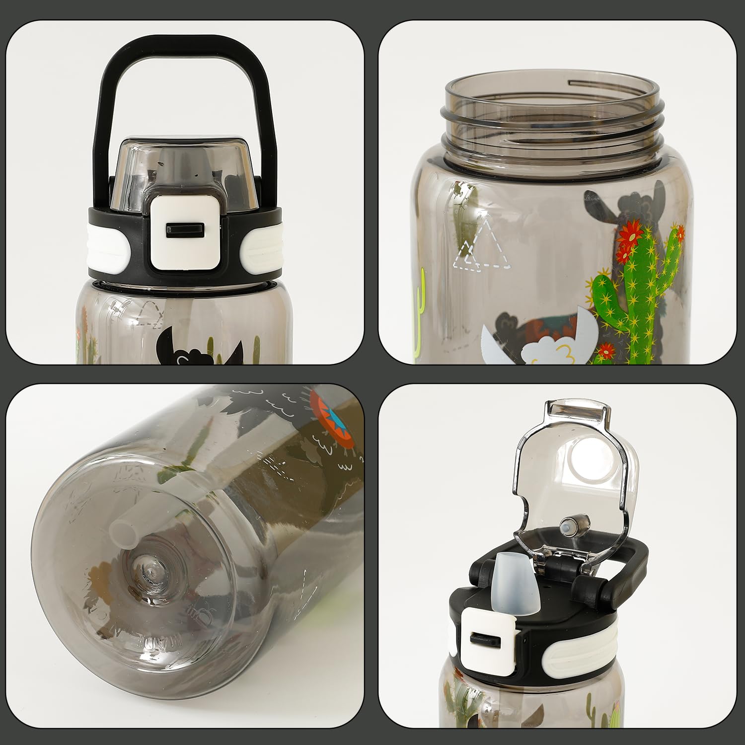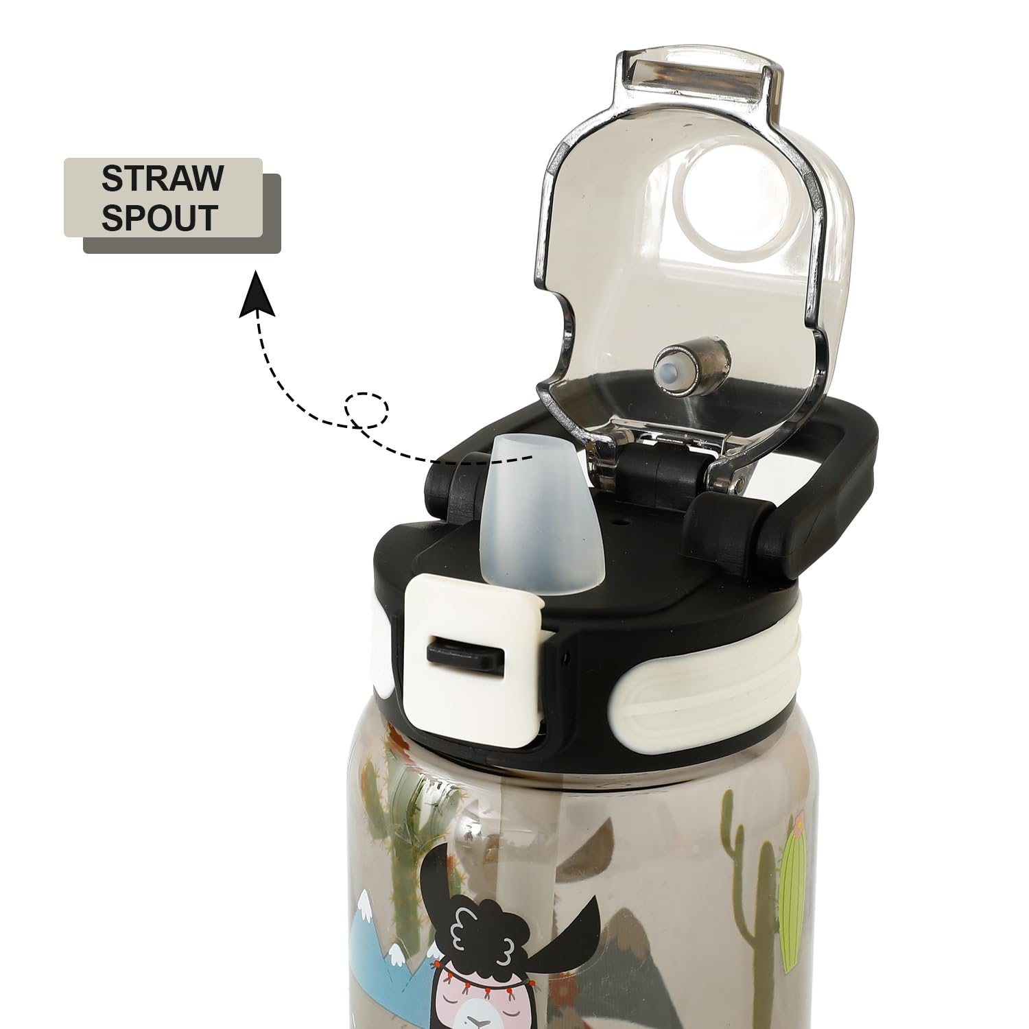 The standout feature of this water bottle is its convenient built-in straw, which revolutionizes the way kids hydrate on the go. Say goodbye to spills, leaks, and messy drinking habits – with the press of a button, the straw pops out, ready to deliver a refreshing sip whenever and wherever it's needed. Whether they're in the classroom, on the playground, or in the car, kids can stay hydrated with ease, without missing a beat of their busy day.But the innovation doesn't stop there. This water bottle is also equipped with a secure and leak-proof lid, ensuring that every drop stays where it belongs – inside the bottle. Whether it's tossed into a backpack, jostled in a sports bag, or accidentally knocked over on a crowded table, you can trust that this water bottle will keep its contents contained, preventing messes and spills wherever life takes you.Detailed Specifications: