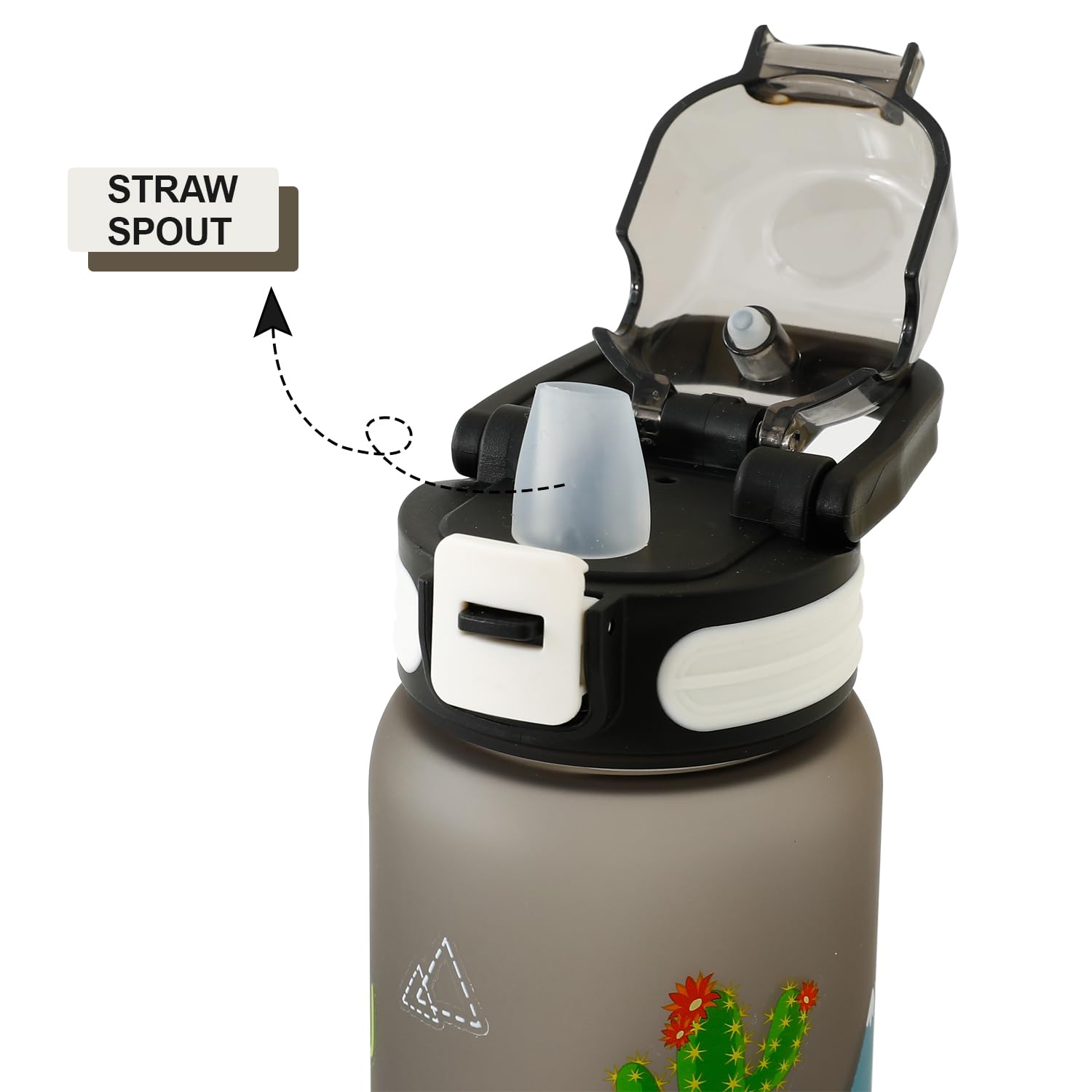 The standout feature of this water bottle is its convenient built-in straw, which revolutionizes the way kids hydrate on the go. Say goodbye to spills, leaks, and messy drinking habits – with the press of a button, the straw pops out, ready to deliver a refreshing sip whenever and wherever it's needed. Whether they're in the classroom, on the playground, or in the car, kids can stay hydrated with ease, without missing a beat of their busy day.But the innovation doesn't stop there. This water bottle is also equipped with a secure and leak-proof lid, ensuring that every drop stays where it belongs – inside the bottle. Whether it's tossed into a backpack, jostled in a sports bag, or accidentally knocked over on a crowded table, you can trust that this water bottle will keep its contents contained, preventing messes and spills wherever life takes you.Detailed Specifications: