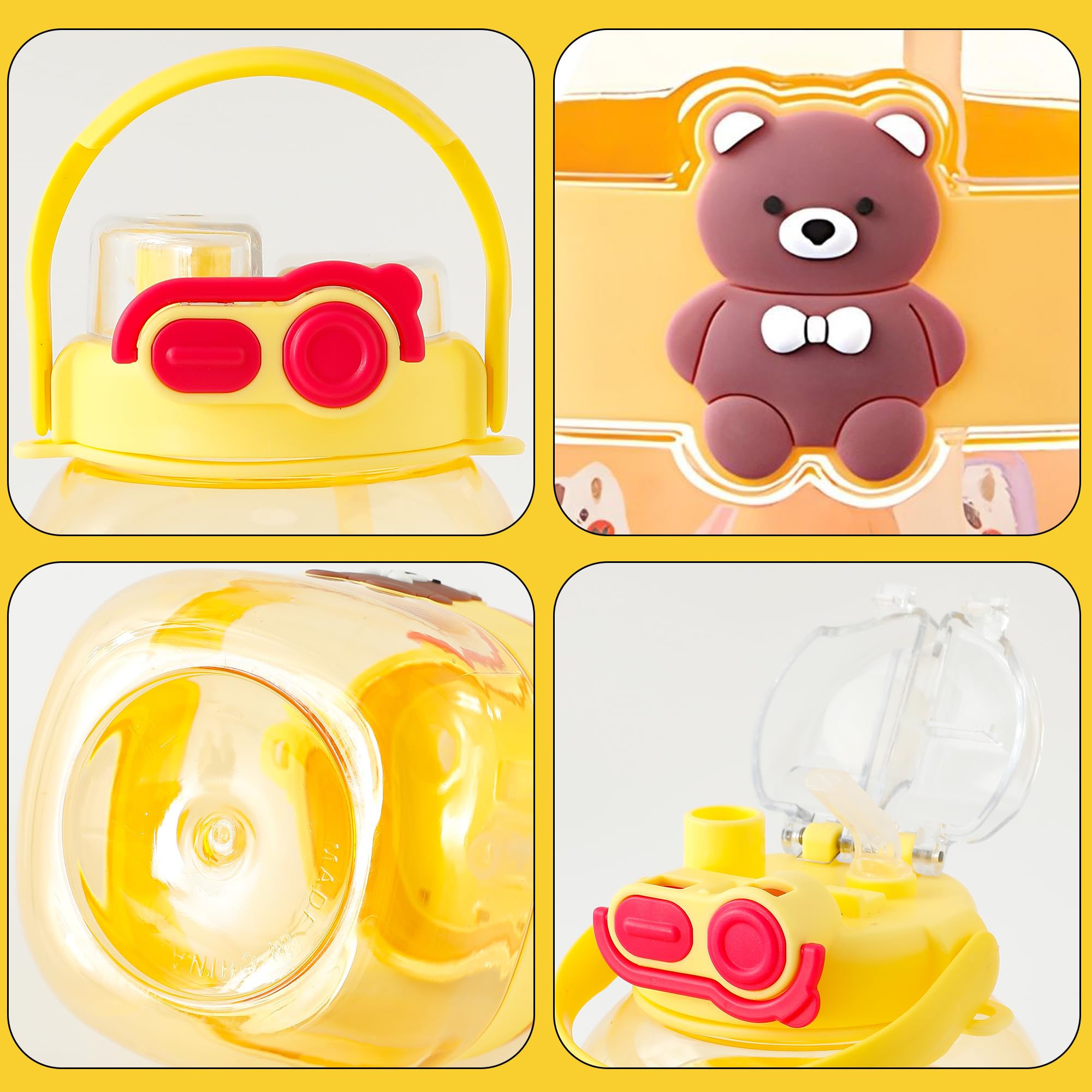 The standout feature of this water bottle is its convenient built-in straw, which revolutionizes the way kids hydrate on the go. Say goodbye to spills, leaks, and messy drinking habits – with the press of a button, the straw pops out, ready to deliver a refreshing sip whenever and wherever it's needed. Whether they're in the classroom, on the playground, or in the car, kids can stay hydrated with ease, without missing a beat of their busy day.But the innovation doesn't stop there. This water bottle is also equipped with a secure and leak-proof lid, ensuring that every drop stays where it belongs – inside the bottle. Whether it's tossed into a backpack, jostled in a sports bag, or accidentally knocked over on a crowded table, you can trust that this water bottle will keep its contents contained, preventing messes and spills wherever life takes you.