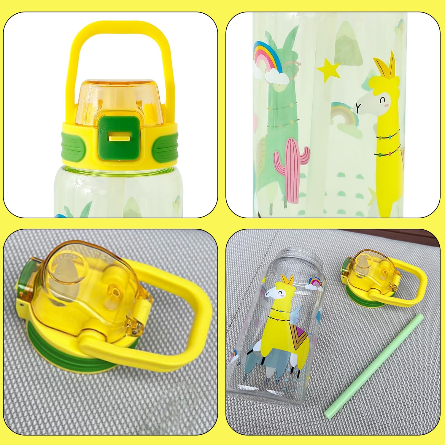 The standout feature of this water bottle is its convenient built-in straw, which revolutionizes the way kids hydrate on the go. Say goodbye to spills, leaks, and messy drinking habits – with the press of a button, the straw pops out, ready to deliver a refreshing sip whenever and wherever it's needed. Whether they're in the classroom, on the playground, or in the car, kids can stay hydrated with ease, without missing a beat of their busy day.But the innovation doesn't stop there. This water bottle is also equipped with a secure and leak-proof lid, ensuring that every drop stays where it belongs – inside the bottle. Whether it's tossed into a backpack, jostled in a sports bag, or accidentally knocked over on a crowded table, you can trust that this water bottle will keep its contents contained, preventing messes and spills wherever life takes you.Detailed Specifications: